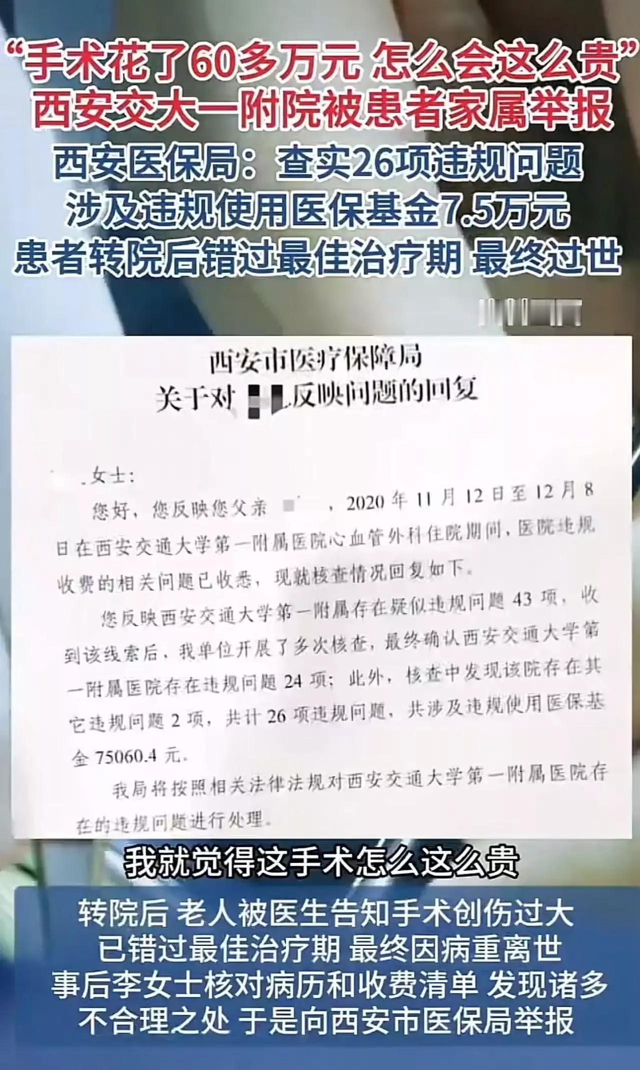“我爸做的是心脏手术,账单上怎么会有 34 次会阴清洗?”父亲术后 46 天离世,交大硕士女儿怒扒 60 万账单,撕开医院医保黑洞,一场手术下来,光纱布就花了6000多块,这是要把人裹成木乃伊吗?网友;想过医院黑,没想到这么黑! “我爸做的是心脏手术,账单上怎么会有 34 次会阴清洗?”父亲术后 46 天离世,交大硕士女儿怒扒 60 万账单,撕开医院医保黑洞,一场手术下来,光纱布就花了6000多块,这是要把人裹成木乃伊吗?网友:想过医院黑,没想到这么黑! 这不是个别现象,而是许多家庭在面对“看似正规”的医疗体系时的共同噩梦。你是否曾经好奇,为什么一份普通的医疗账单,总会让人看得云里雾里?为什么同样的手术,不同医院的收费天差地别?而在这背后,又隐藏着多少不为人知的“潜规则”? 就在这个看似平凡的账单背后,隐藏着一个庞大的黑洞。60万的治疗费,里面究竟藏了多少“猫腻”?那6000多块的纱布,难道真的是必需品?还是被医院“巧妙”变成了“必须购买”的“硬性配套”?更令人愤怒的是,许多家庭在面对高昂的医疗费用时,往往只能望账单叹气,甚至被迫放弃治疗。 更令人心碎的是,父亲的离世,似乎也成了这场“黑幕”交易的牺牲品。我们不禁要问:究竟是医疗技术的进步带来了希望,还是金钱的游戏让生命变得如此脆弱?为什么在这个本应充满关爱的行业里,患者和家属反倒成了“被宰割”的对象?这些数字背后,是无数家庭的悲剧和无奈。 作为一名年轻的女儿,她用法律和真相,撕开了这层厚厚的“医界面纱”。她的行动,不仅仅是为了父亲,也是为了所有在黑暗中挣扎的家庭。她用自己的勇气告诉我们:没有人应该被“账单”绑架,没有人应该在生命的最后时刻,还要为钱而焦虑。 这场揭露,不仅是一次医疗黑幕的曝光,更是一场对整个行业的反思。我们需要的不仅是更透明的收费制度,更是一个以人为本、尊重生命的医疗环境。每一份账单背后,都是一个家庭的希望与绝望交织的故事。 所以,面对这些令人震惊的数字,我们是不是也该站出来,为自己发声?让我们共同呼吁:别让黑暗吞噬了我们的权益,让生命不再成为“金钱游戏”的牺牲品。每一次的曝光,都是希望的火种;每一次的反思,都是未来的曙光。心脏手术费用 手术总花费