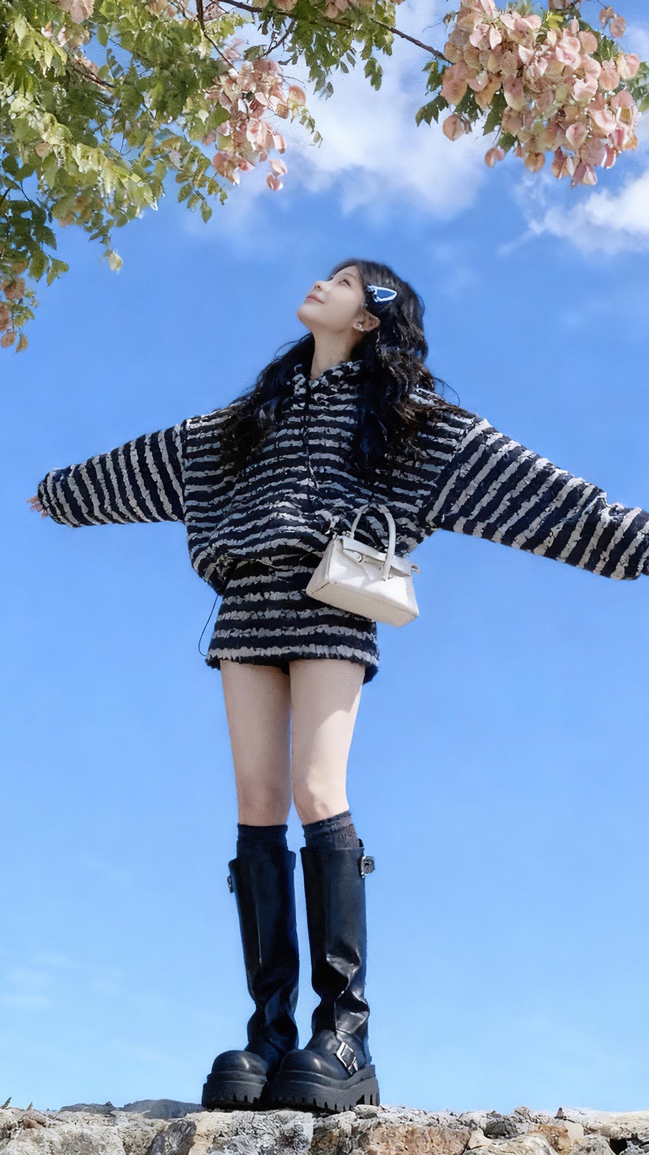 谁懂这套条纹针织套装的“懒人快乐”啊! 不用费心搭配,套上就是随性的日系感 软乎乎的面料裹着身体,风钻进来都是暖的 配个小挎包和厚底靴,站在树下就像把漫画里的秋日穿了出来~美爆了 穿搭 美衣