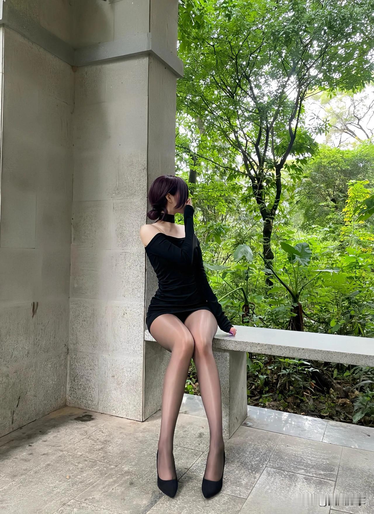 都市绿意中的性感黑裙美女,尽显优雅与神秘[星星眼][星星眼]