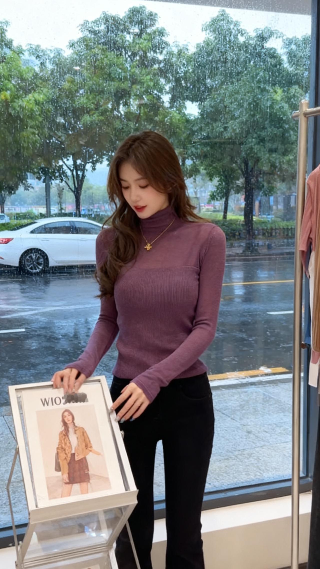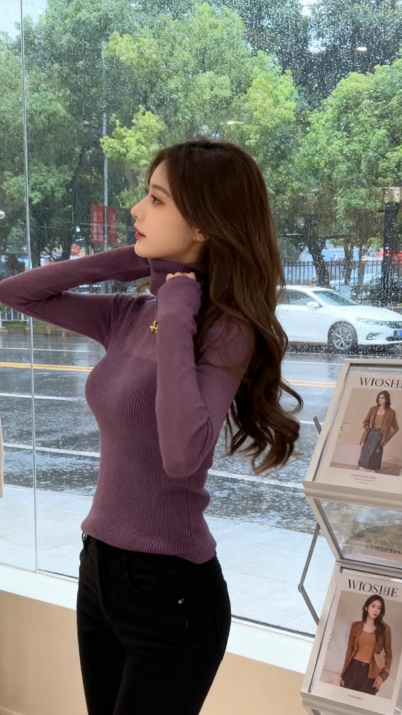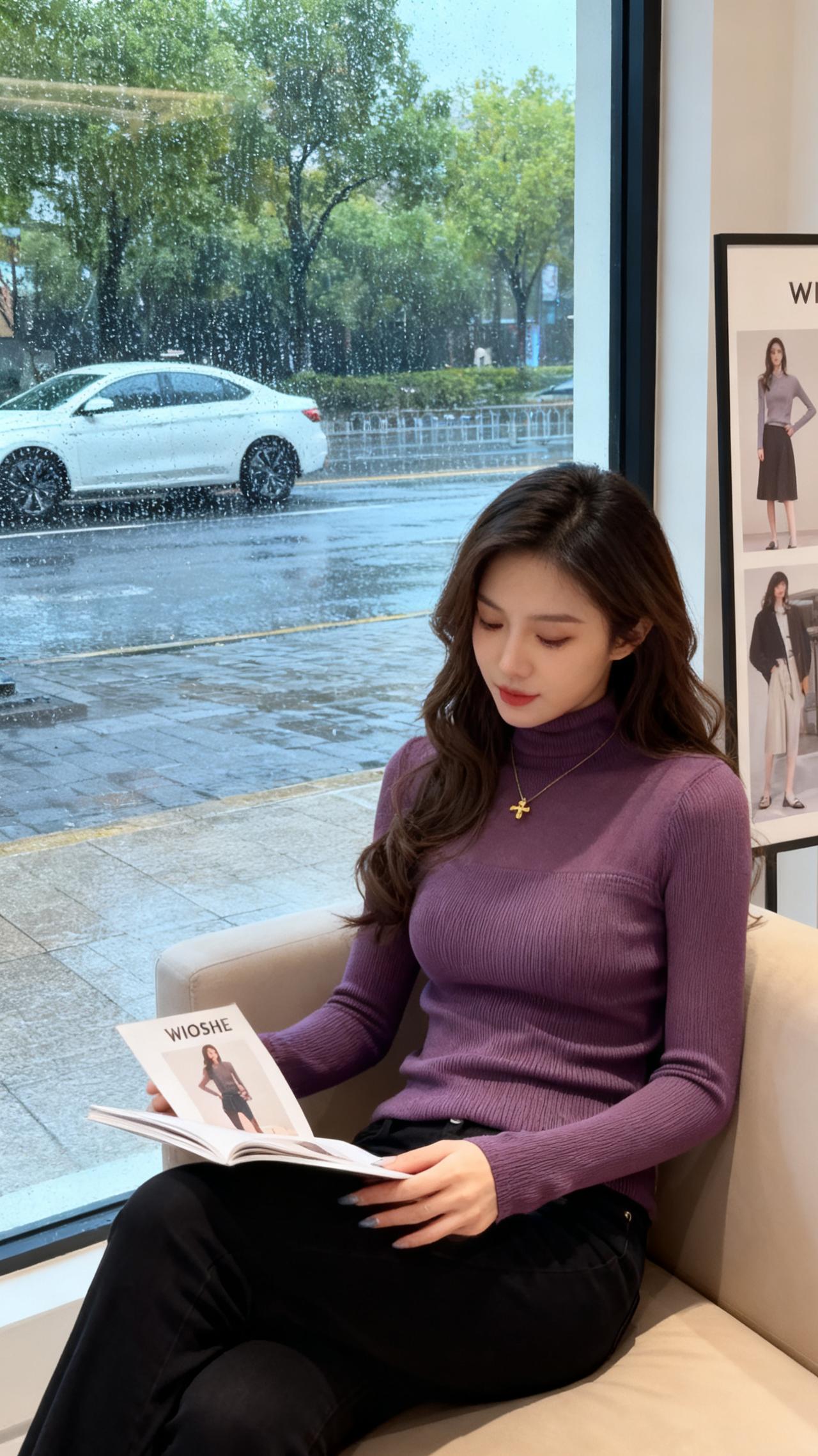 午后的咖啡馆,偶遇文艺女神!她坐在窗边,一身灰色毛衣搭配黑色围巾,简约又不失气质