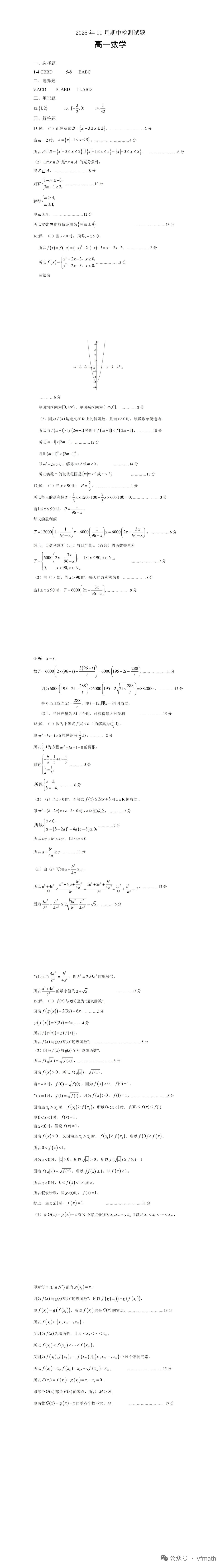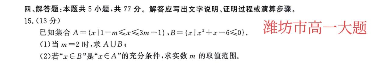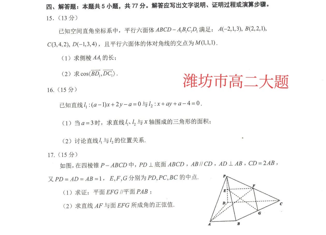山东省潍坊市高一高二数学上学期期中考试大题及其答案。