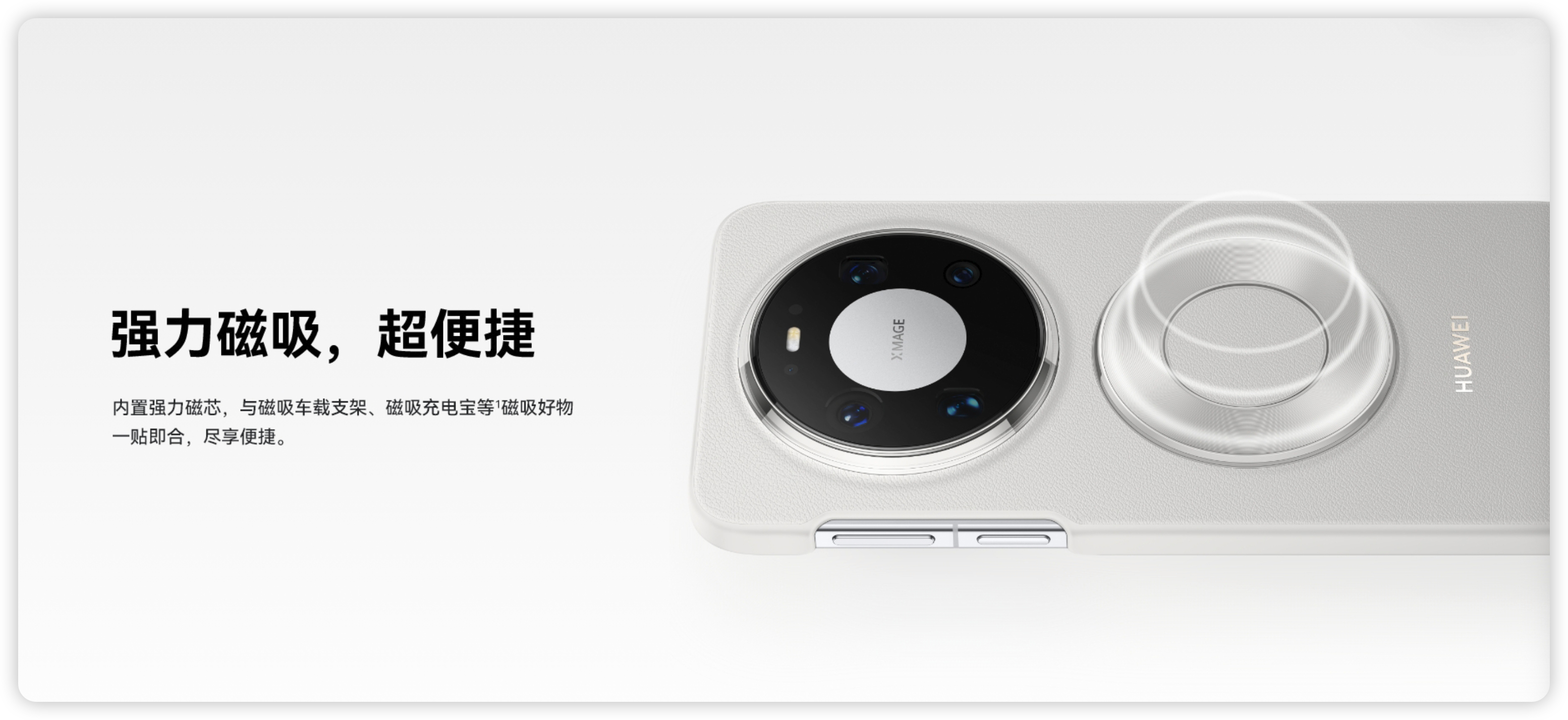 华为Mate80系列不支持磁吸 Mate80 系列后盖那个看着像是可以磁吸的地方,确实是用于无线充电的开孔,但它没有内置磁环,没法实现磁吸。但是别担心,华为官方出了带磁环的官方手机壳,用上磁吸手机壳,就能正常磁吸了。手机壳卖 ¥199 。嫌贵也别怕,肯定会有第三方磁吸壳的。