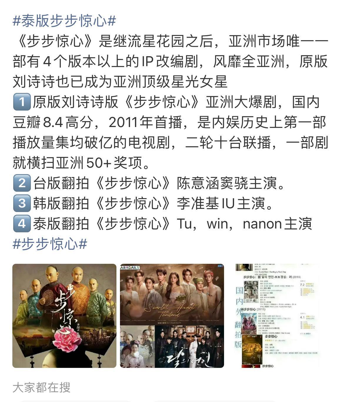 《步步惊心》是继流星花园之后,亚洲市场唯一一部有4个版本以上的IP改编剧,风靡全