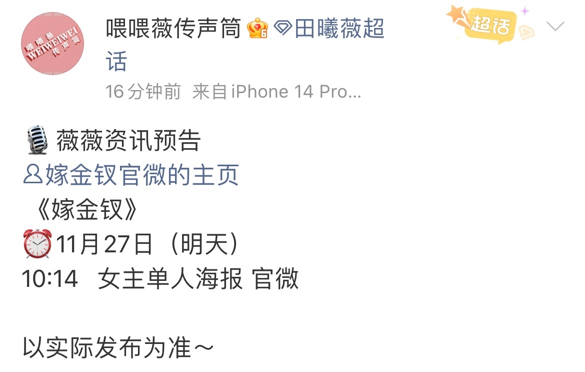 田曦薇嫁金钗角色海报嫁金钗田曦薇官宣田曦薇嫁金钗角色海报,期待明天正式官宣!