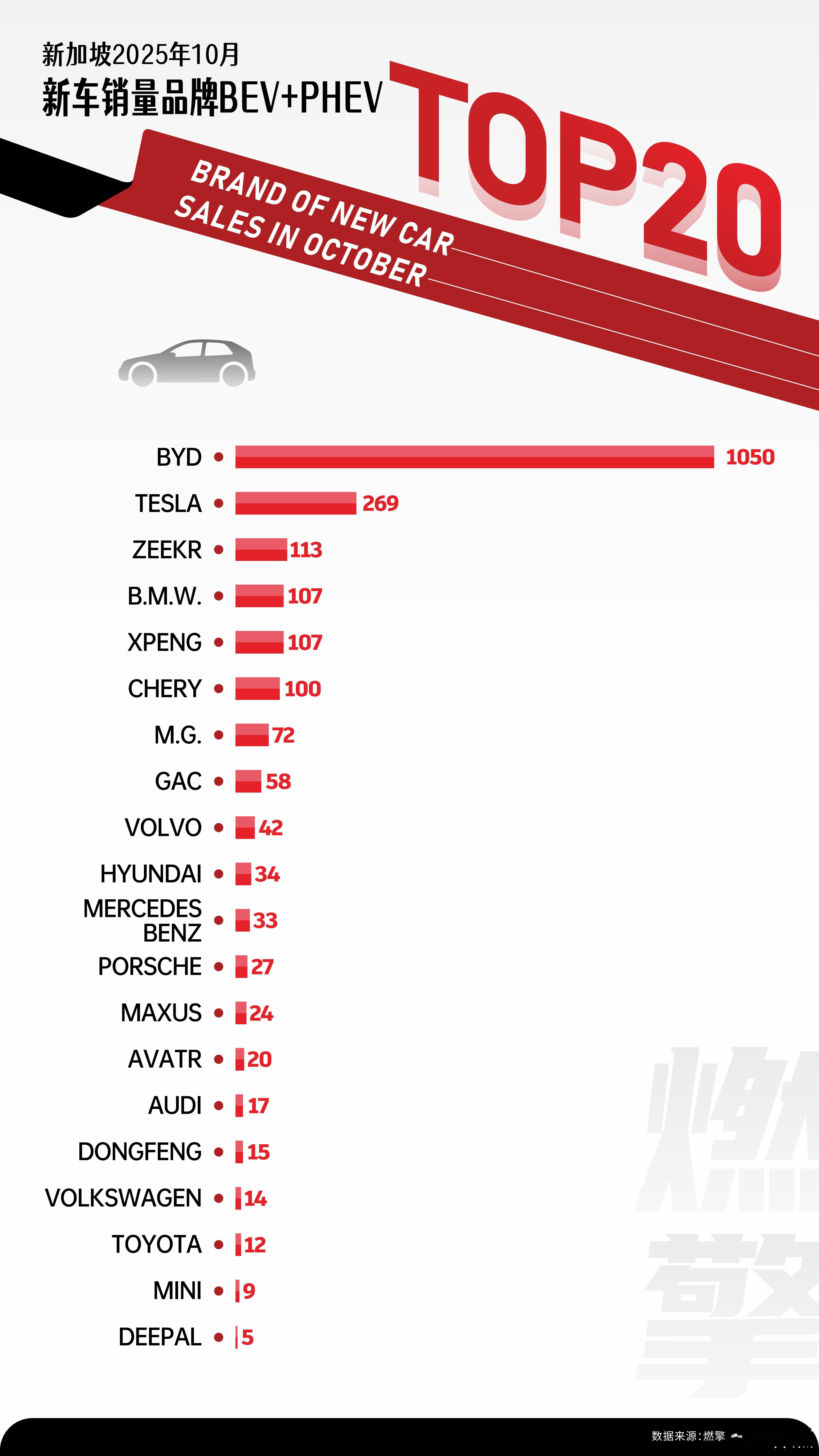 新加坡新能源车市:比亚迪遥遥领先,中国军团集体发力10月,新加坡新能源车型市场展现出清晰的竞争格局。比亚迪以显著优势保持领先,多个中国品牌在不同细分市场积极布局,而传统豪华品牌则维持着小众定位。这一市场特征与新加坡消费者注重实用性、关注性价比的用车需求高度契合。比亚迪以1050辆的月销量遥遥领先,达到第二名特斯拉销量的近四倍。这一出色表现得益于其产品与新加坡城市用车场景的精准匹配:海豚、元PLUS等小型及紧凑型新能源车既适应狭窄道路的通勤需求,又能满足家庭日常使用。同时,高配置与合理价格的组合准确把握了新加坡消费者注重实用体验、不盲目追求品牌溢价的购车心理。除比亚迪外,极氪、小鹏、奇瑞、MG等中国品牌也在各自细分领域取得进展,形成了覆盖不同价位和定位的产品矩阵:极氪凭借设计和配置优势吸引中高端消费者;小鹏以智能驾驶功能服务科技敏感型用户;奇瑞与MG则通过入门级车型满足预算有限的通勤需求。这种多层次、全方位的产品布局,使中国品牌在新加坡新能源市场确立了重要地位。相比之下,特斯拉与豪华品牌的市场表现相对有限。特斯拉以269辆的销量位居第二,而宝马、奔驰、保时捷等豪华品牌的月销量均停留在两位数水平。这表明新加坡新能源市场的主流需求集中在实用型通勤车辆,特斯拉的品牌溢价与豪华品牌的高端定位在此处的受众范围相对有限。未来,比亚迪的领先地位预计将继续保持。若能针对新加坡城市用车特点进一步优化产品,如推出更适配的车型尺寸、提升充电便利性等,其市场地位将更加稳固。其他中国品牌如能强化在城市通勤场景的产品优势,也有望在细分市场获得更多增长空间。而对于特斯拉与豪华品牌而言,若不推出更贴近本地需求的实用型新能源车型,可能将继续维持当前的小众市场定位。大V聊车