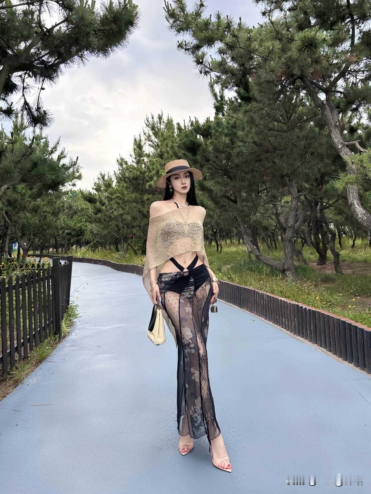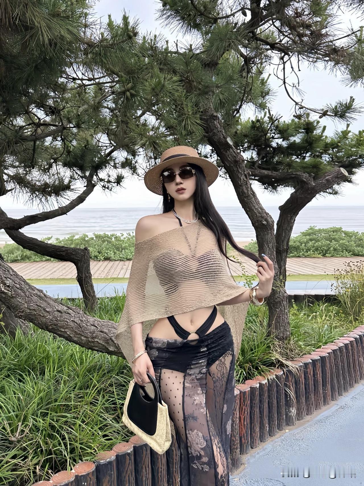 海边度假风穿搭,草帽+透视长裙,轻松自在!🌊👗👒