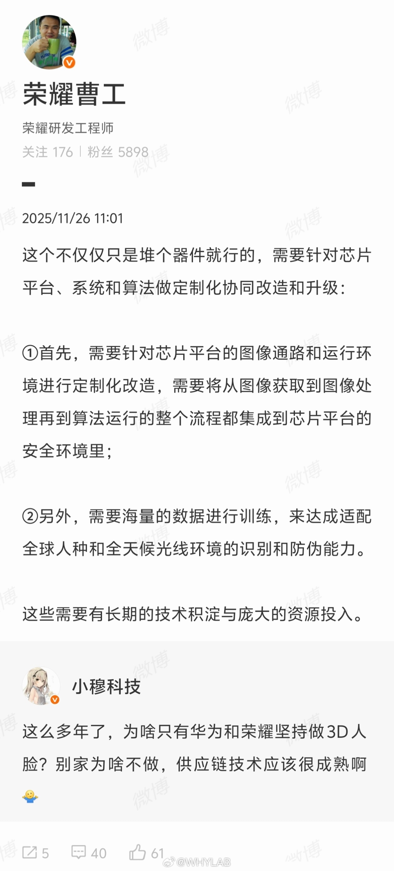 为什么只有华为和荣耀坚持做 3D 人脸?荣耀研发工程师:需要有长期的技术积淀与庞大的资源投入。
