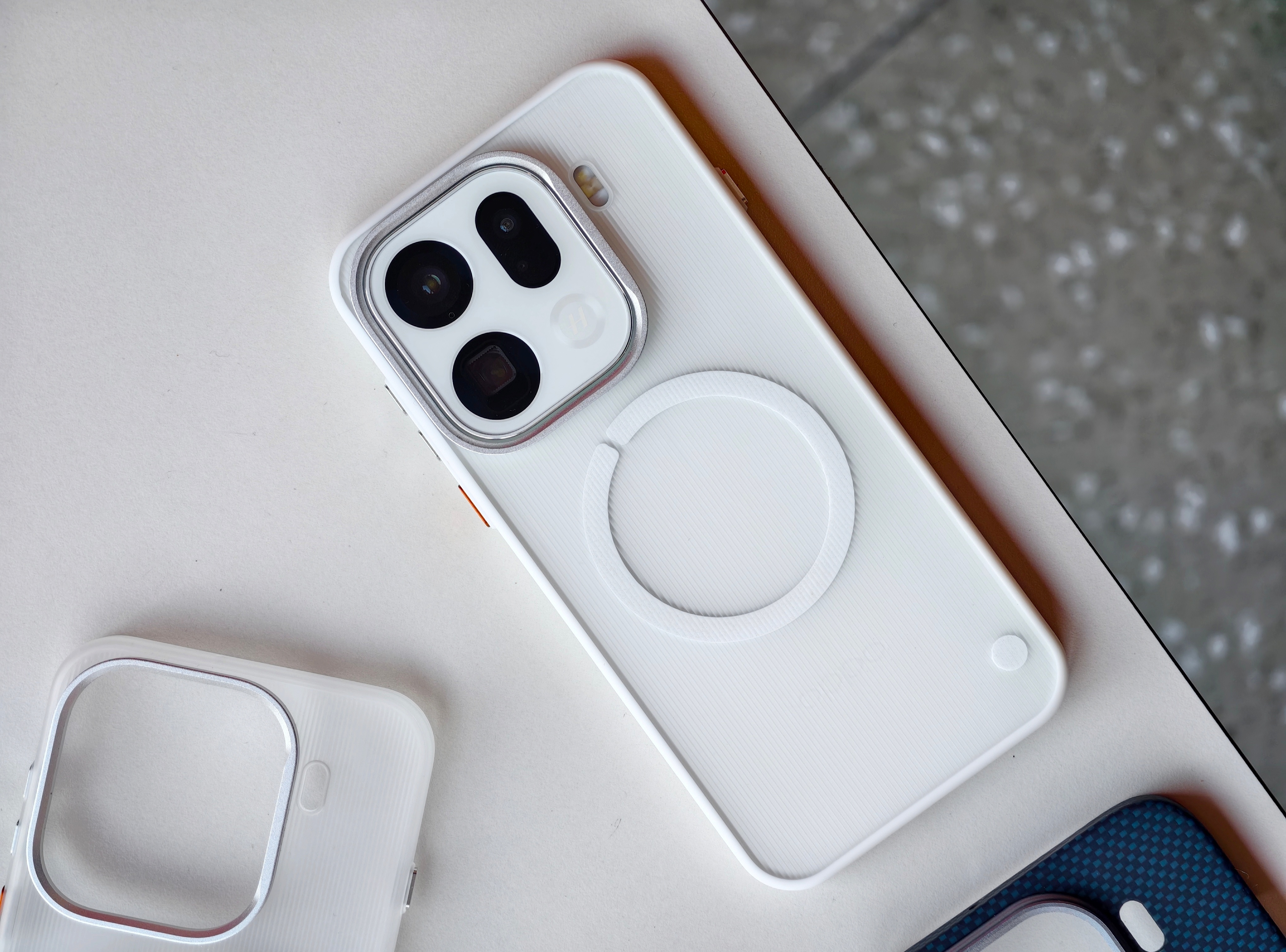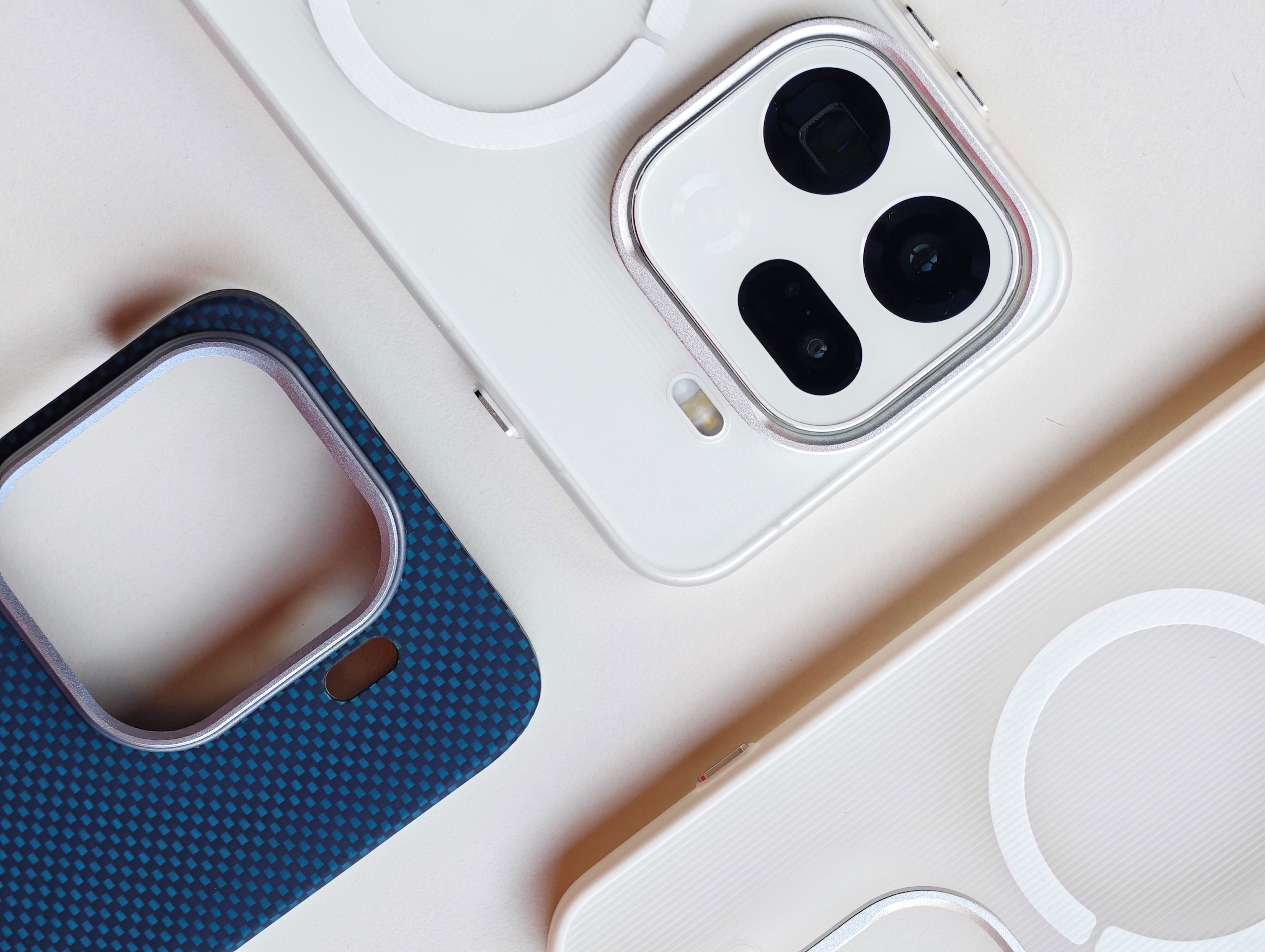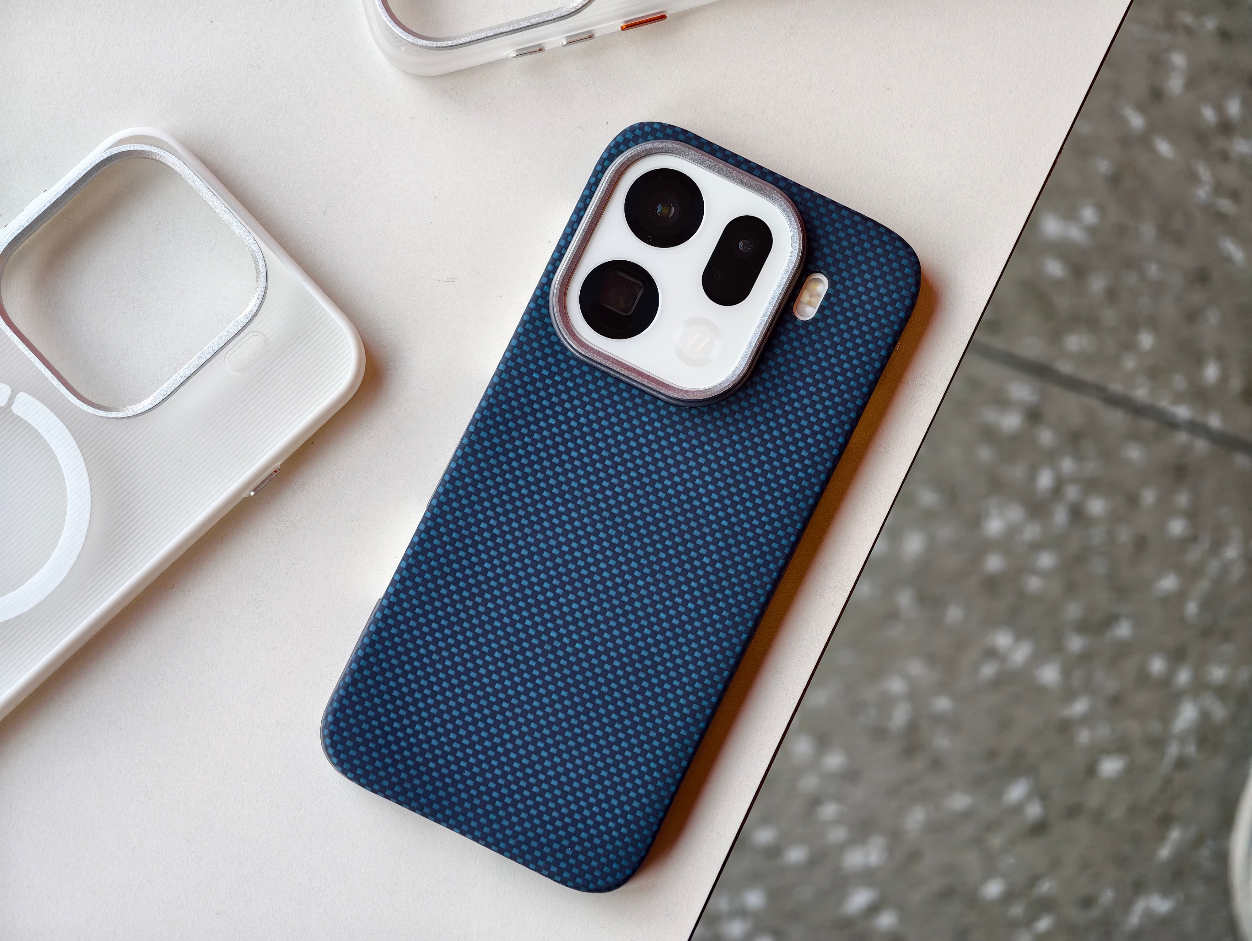 OPPO Find X9 Pro 好看的手机壳又增加啦~我比较喜欢透白跟凯夫拉壳,凯夫拉的手感好,透白更能展现出原机的美。都是来自家的,凯夫拉还支持官方增滤镜套件,蛮不错的,蓝色也不会像官方的纯黑色太沉闷。另外都是三款壳都支持磁吸,透白的磁吸圈还是夜光的,等晚上我在来试试夜光效果