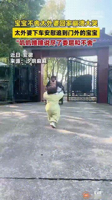 安徽一个刚学会走路的宝宝,发现太外婆要回家的时候,瞬间崩溃地哭着追到门外,脸上的表情尽是委屈与不舍,太外婆刚开始呵呵地笑着,但之后担心宝宝再追出来会有危险,于是连忙下车抱起宝宝。 网友看完这一幕,都觉得隔辈亲的情感真是太让人感动了,这个宝宝和太外婆之间隔了四代,一个咿呀学步,一个步履蹒跚,相信宝宝一定很喜欢太外婆,所以才舍不得她离开,就算是走路不稳,也要哭着追出去挽留,这一幕让人感受到了美好,实在是太暖心了。大家怎么看呢?