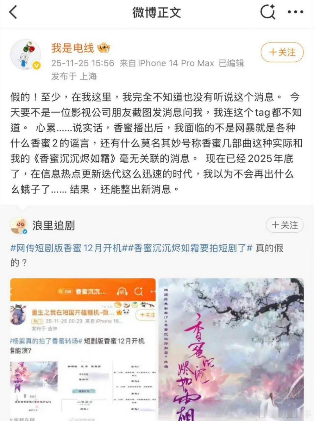 原著作者辟谣香蜜要拍短剧 《香蜜》短剧拍摄传闻引发版权归属热议,制片人刘宁与原著作者的相反表态,凸显影视改编中权利界定的重要性。法律层面,版权归属通常以合同约定为准,该剧版权已确定为完美世界影视所有,但短剧拍摄是否需额外获得作者授权仍需进一步说明。