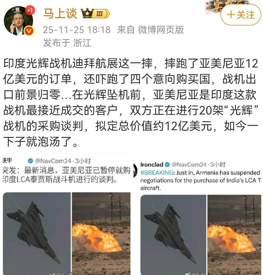 亚美尼亚真敢买印度战机吗? (如图所示)印度的光辉战机在迪拜坠毁后,据说吓走一个潜在的大客户亚美尼亚。虽说印度本国的军火大多购自国外,但真有外国客户买印度武器,亚美尼亚就是这么一个冤大头,上次购买的印军火的教训看来一点没吸取,难怪被阿塞拜疆暴打,毫无还手之力。