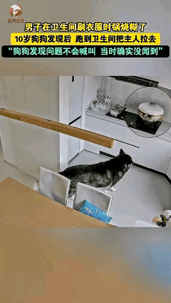 万物皆有灵!近日浙江舟山,男子正在卫生间洗衣服,狗狗突然冲进来叼住男子的裤子就往