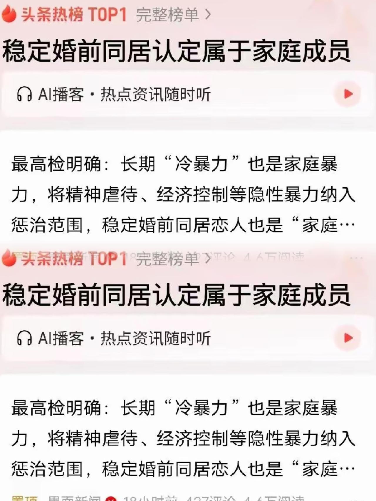 这一下, 还没结婚的人又要慌了, 因为新规发布,婚前同居也人认定为家庭成员。这变化可太大了。以前不少人怕麻烦不领证,想着轻松搭伙过日子,现在可不行了,同居和结婚的责任边界一下子拉近,再想浑水摸鱼、随便凑活住,可得好好掂量掂量,万一后续有纠纷,那可就扯不清啦。 不过呢,这规定对真心想结婚的人反而是个保障。抱着过日子心态同居,提前适应生活,还能明确责任,真遇到事儿也有个依据。而且还能筛掉不少渣男渣女,那些只想享受不负责、玩够就抽身的人,现在可没那么容易全身而退了。 大家觉得这新规是利大于弊,还是弊大于利呢?快来评论区说说你的看法,一起讨论讨论!