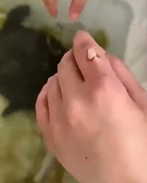女生被甲鱼咬到手愣是一声不吭,淡定地把甲鱼放进水里。网友表示:教科书式处理了。都没有人心痛一下女生的手,好大一个口子。