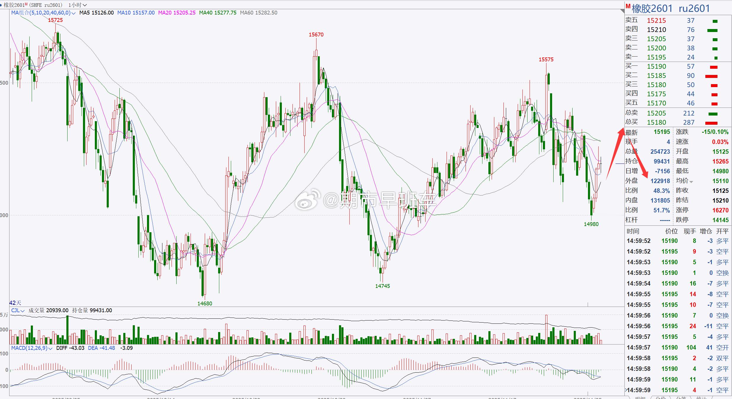 1、【玻璃2601】玻璃关注1000一带偏多!玻璃日内伴随着反弹调整,整体行情目前有所止跌迹象,后市我们重点关注1000一带,若此位置企稳,玻璃还有短线反弹调整预期,建议短线偏多跟进,稳健者建议先观望;例如多关注1015—1005附近,上方先关注1060附近,突破再关注1100附近;空关注1100突破情况再择机考虑介入;(建议仅供参考,具体操作以开盘点位实时跟进,据此操作风险自担)2、【甲醇2601】甲醇看短期反弹修正!甲醇目前有止跌迹象,整体行情伴随短期反弹调整,后市我们重点关注2000一带,若此位置未能跌破,建议短线偏多跟进,看短期反弹修正;例如多关注2065—2050附近,上方先关注2150附近;空关注2150突破情况再择机考虑介入;(建议仅供参考,具体操作以开盘点位实时跟进,据此操作风险自担)3、【橡胶2601】橡胶关注15000一带,短线跟进!橡胶日内伴随着探底回升,行情再次回到15000一带,后市我们重点关注此位置,若此位置企稳,建议短线跟进,不过分看空间;稳健者建议先观望;例如多关注15100—15050附近,上分先关注15300—15350附近;空关注15300—15350附近再择机考虑介入;(建议仅供参考,具体操作以开盘点位实时跟进,据此操作风险自担)玻璃 纯碱 甲醇 乙二醇 橡胶