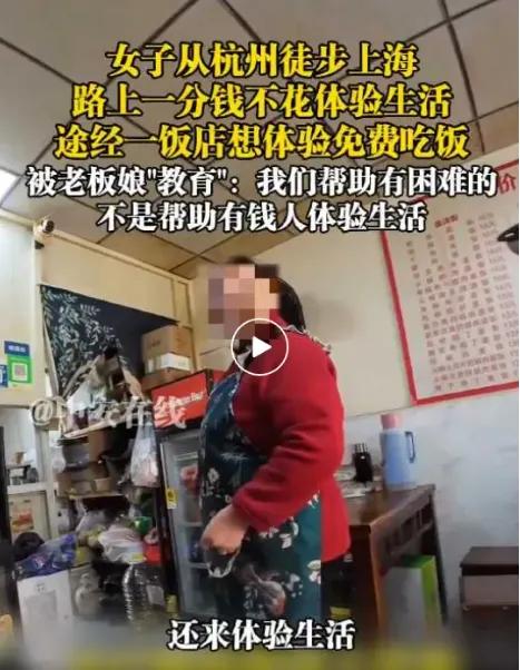 林子大了,鸟啥样的都有!居然有人把要饭美其名曰体验生活? 最近一女子从杭州徒步到上海,一路理直气壮求免费吃喝,结果被饭店老板娘当场教育!我们帮的是真困难的人,不是有钱人体验生活! 这话简直戳到心坎里!你说你一身专业装备,非要蹭普通小店的一顿饭,这不就是打着挑战之名消费别人的善意吗?真想体验生活,怎么不靠劳动换饭?帮人洗个碗,搬个货,哪样不比伸手白嫖强? 说到底,善良是有限的,该留给真正需要的人。当零元挑战变成流量密码,那些真正挨饿受冻的人,可能反而因信任消耗而得不到帮助。别让所谓的体验,成了对弱势资源的挤占。 生活不是剧本,共情远比表演更重要。