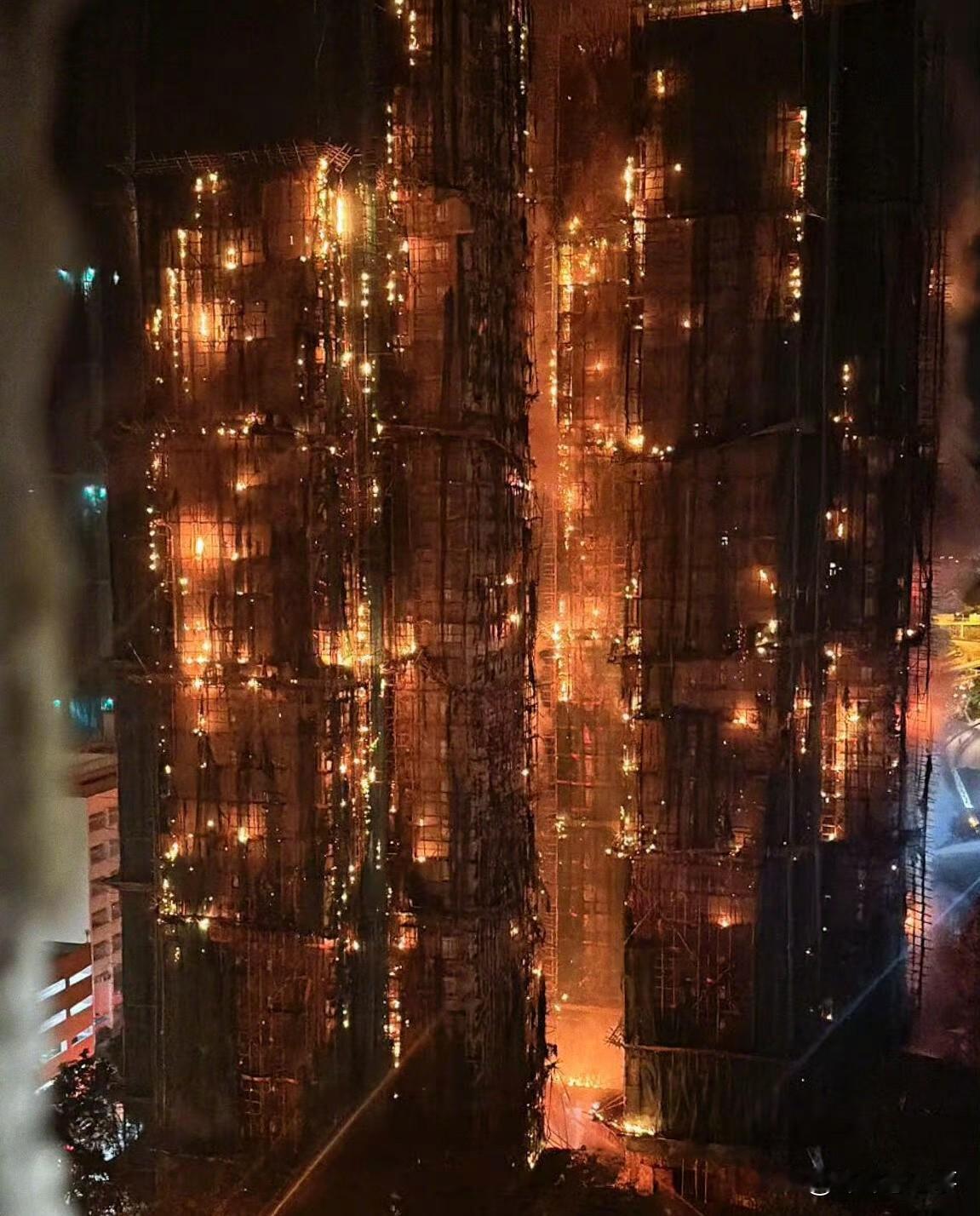 香港大埔区八栋高楼陷火海,37岁消防员殉职,竹脚手架成致命通道