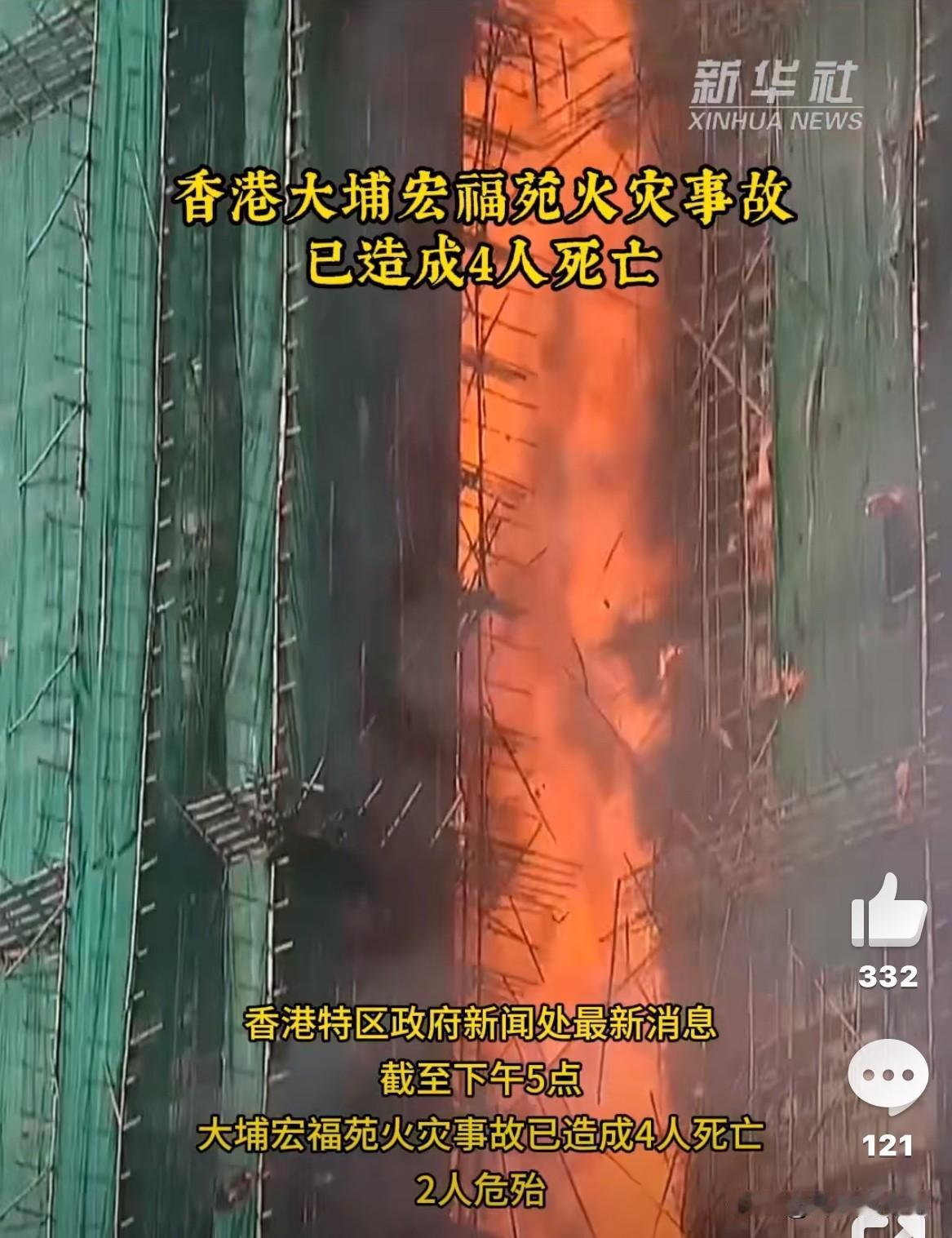 这不是电影场景,而是昨夜香港大埔区宏福苑的真实惨剧。八栋40层高楼被烈火吞噬,火势迅速升级为最严重的五级。截至目前,这场恶性火灾已导致13人遇难,28人受伤。更令人痛心的是,一名37岁的消防员在救援中英勇殉职。 看着整片楼群陷入火海,最让人揪心的是这些建于1983年的老楼密集程度。每栋楼住着近两千户居民,八栋楼里生活着数万人。火势之所以蔓延如此迅速,不仅因为楼间距过窄,更令人震惊的是,外墙上依然保留着传统的竹脚手架,这些竹架在火灾中成了天然的"引火通道"。 经初步调查,起火原因竟是商场草墙被随意丢弃的烟头引燃。一个不起眼的小动作,却酿成如此惨重的代价!当所有人都往安全地带逃离时,消防员却要逆着人流冲进火场。那位37岁的消防员,用生命诠释了什么是责任与担当。 这场火灾烧出的不仅是烈焰,更是城市安全的深层隐患。老旧高楼的消防设施能否应对突发火情?密集小区的逃生通道是否畅通?竹脚手架这种传统工艺是否还适用于现代高楼?这些问题都需要我们认真反思。 希望逝者安息,生者警醒。不要再让英雄的牺牲,换不来应有的改变。