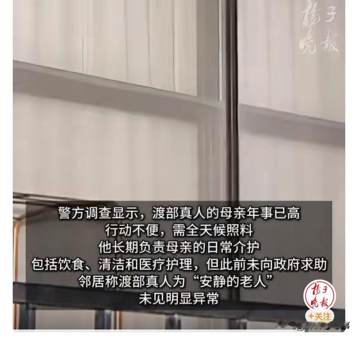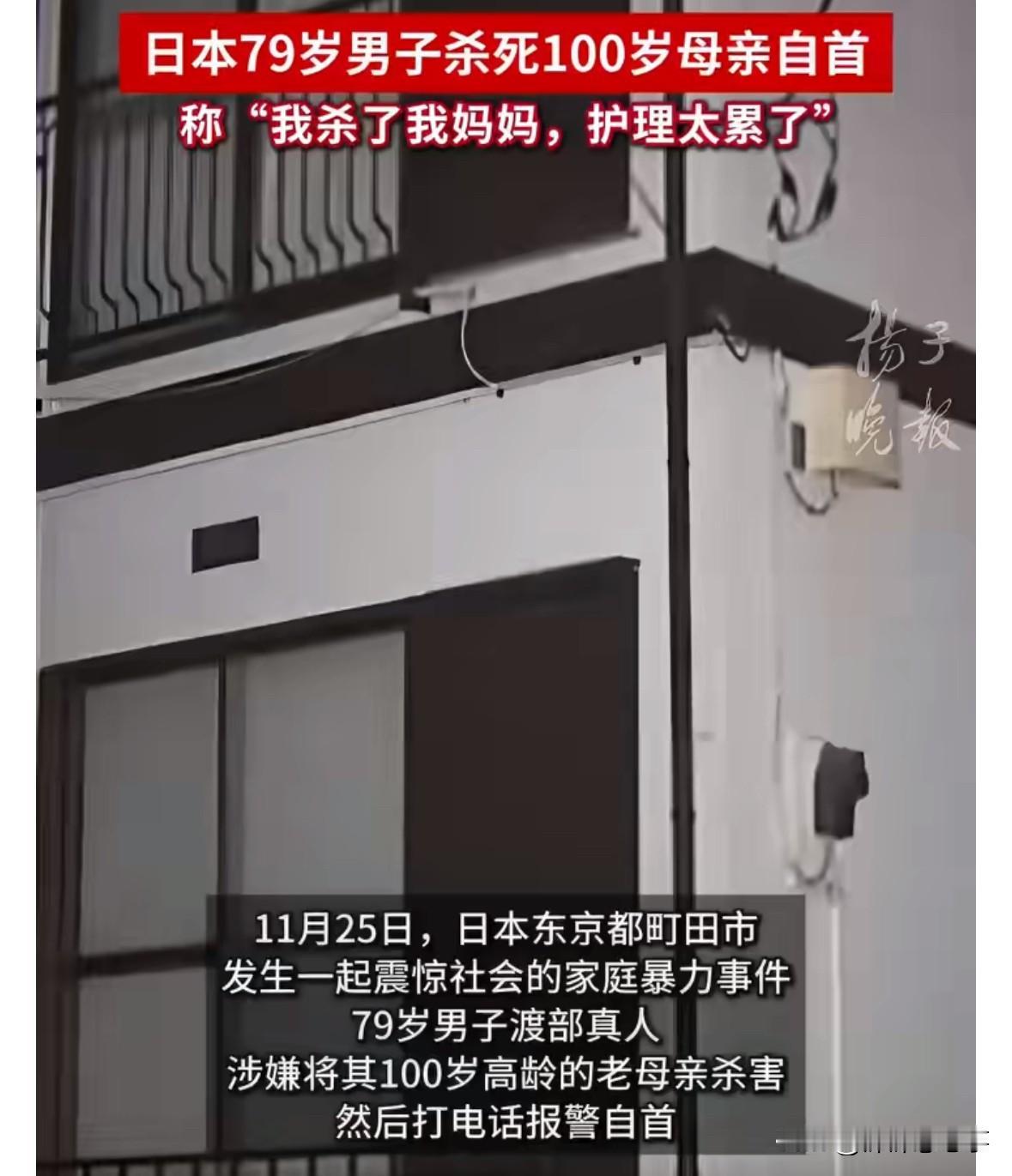 79岁儿子闷死百岁母亲 崩溃哭诉:护理太累了 这起发生在东京都町田市的悲剧,揭开了日本高龄化社会最残酷的伤疤。79岁的渡部真人用双手结束了100岁母亲的生命,随后平静地报警自首:"我杀了妈妈,护理太累了。" 案发当天下午,这个年近八旬的儿子在家中用手捂住母亲口鼻,导致老人窒息身亡。当警方赶到时,他没有任何反抗,只是反复念叨着长期照护带来的沉重压力。邻居眼中"安静的老人",最终被日复一日的护理重担压垮。 这不是孤例。就在四天前,宫崎县刚发生八旬老妇疑似杀害丈夫和残疾儿子后自杀的惨剧。接连发生的悲剧背后,是日本社会日益严峻的"老老介护"困境——老人照顾更老的老人。数据显示,日本超过百万户家庭正面临同样困境。 当79岁的儿子还要承担百岁母亲的日常起居、夜间看护、排泄处理,当养老金的压力叠加照护的疲惫,这场持续多年的"长寿噩梦",最终以最惨烈的方式画上句号。渡部真人案发前从未向政府求助,就像无数个沉默的照护者,在孤独中走向崩溃。 日本正迎来"超高龄社会",近三成人口超过65岁。这起命案敲响了警钟:当整个社会都在变老,我们该如何避免下一个渡部真人?