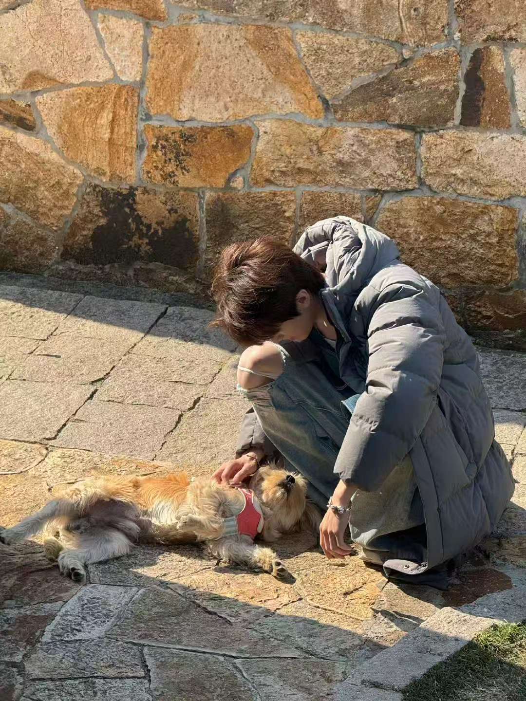 张康乐羽绒服配破洞裤张康乐大家注意保暖张康乐羽绒服配破洞裤, 这个穿搭我也是不懂了老师