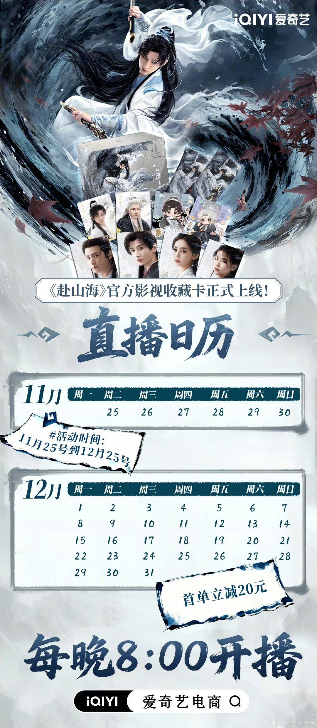 爱奇艺给成毅赴山海纪拆卡直播一个月 成毅赴山海纪念收藏卡拆卡直播日历 直播日历速速码住!一个月超长拆卡盛宴,成毅纪念收藏卡颜值与收藏价值双在线,每晚蹲守直播间,解锁专属山海情缘~