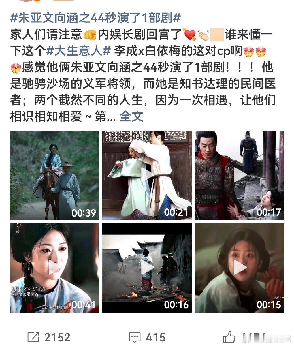 大生意人这两正片都还没出现,且据说朱亚文和向涵之要十几集才上线,但是微博一刷一群人营销号发因为明显下了商剪和营销啊朱亚文一把年纪了,不至于吧,而且他要发力咋不男主剧发,那就是向涵之了,营销美貌和朱亚文cp都是前一轮资源都扑了,最近想继续拿资源吧 那个歪嘴男陈靖可不就是剧和角色都没水花但是硬剪辑营销说压主角有水花起来的