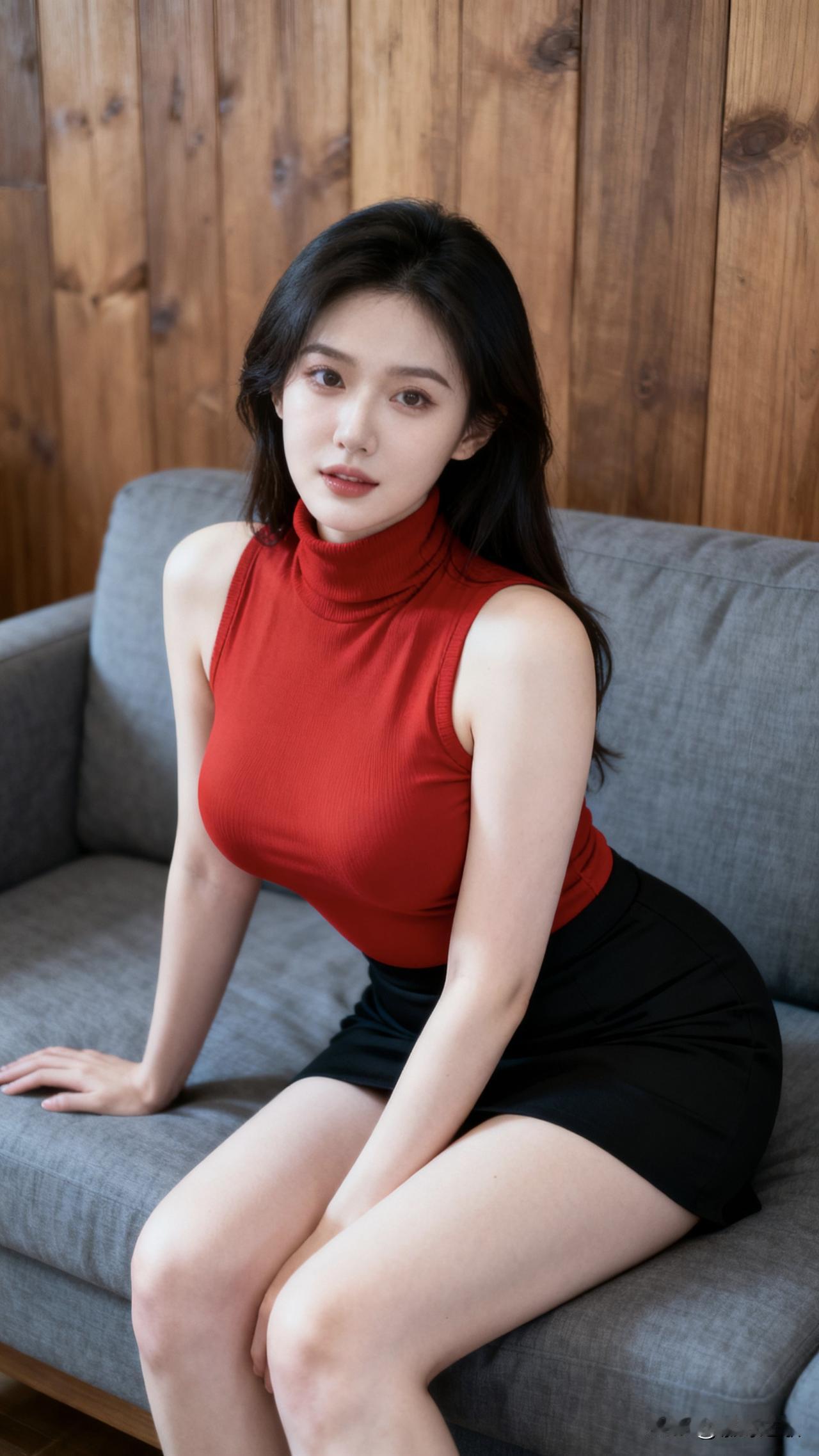 《红裳》 红衣如火映芳华, 木纹深处静如画。 黑裙轻摆身姿俏, 一抹嫣红醉晚霞。 极简的构图与强烈的色彩对比,勾勒出现代女性的优雅与自信。正红色无袖上衣如燃烧的火焰,在浅棕色木质背景的映衬下格外醒目,黑裙的加入更添几分干练与神秘。人物姿态自然放松,微微前倾的身体传递出亲和力,而背景的温暖木质纹理则为画面注入了生活化的温度。整体色调和谐统一,既有时尚的张力,又不失温馨的氛围,展现了当代女性在都市生活中从容不迫的气质。红衣佳人写真 分享一张你最爱的壁纸。 美女人像群 时尚