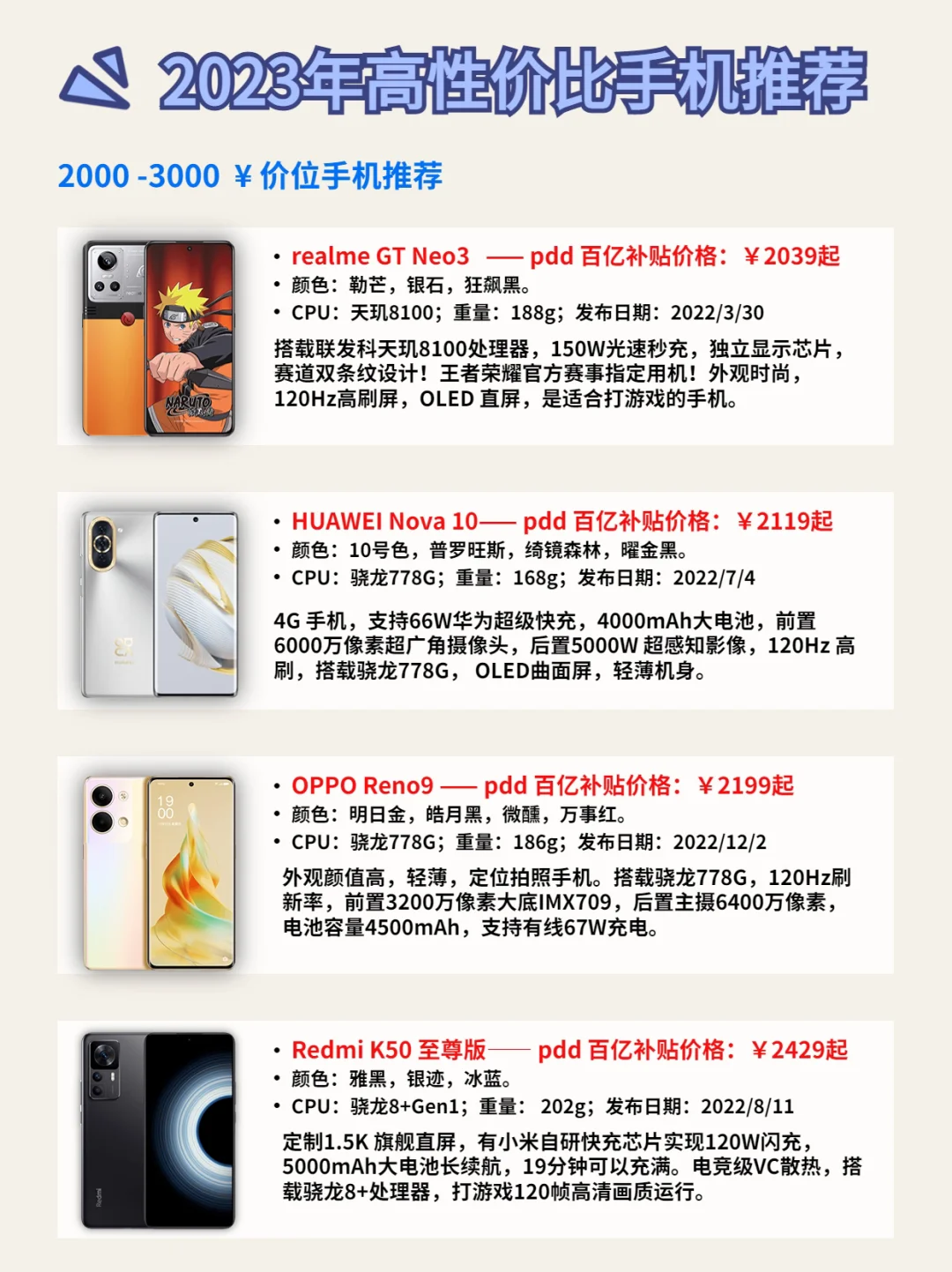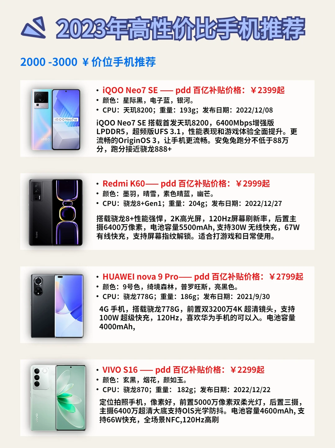 三、2023年2k~3k元高性价比手机推荐(图4.5.6)