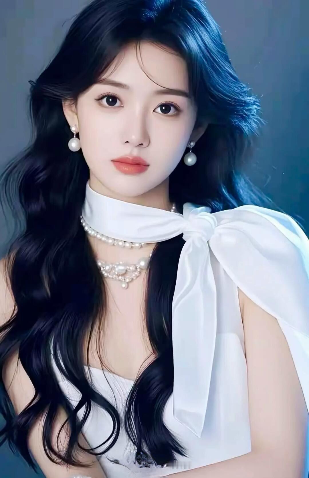 优雅黑发少女,珍珠项链点缀,白色丝巾飘逸,气质满分!💖✨