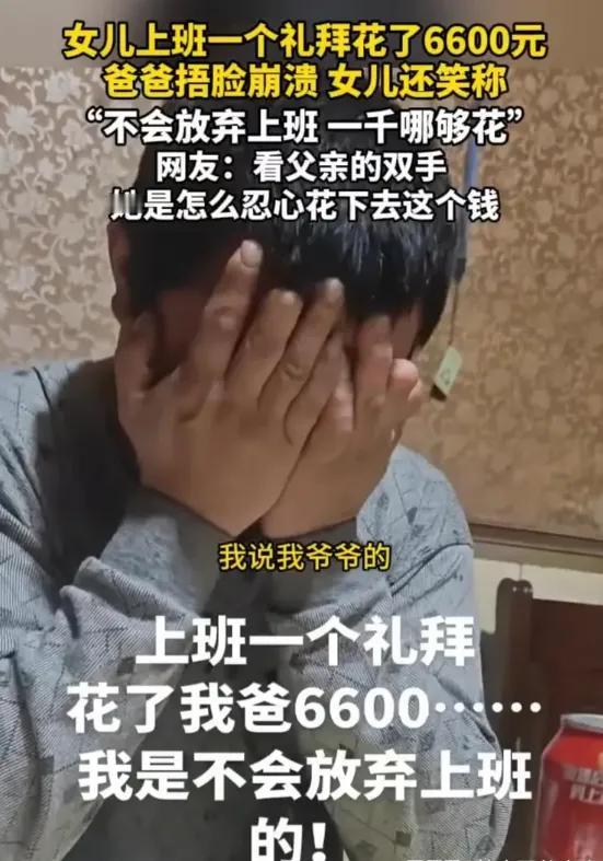 这哪是精致穷?简直是拿父亲的血汗当自来水! 最近刷到个视频,心里堵得慌。一个姑娘上班刚一周,月工资四千,竟花掉老爸6600元。面对镜头,父亲用残缺的手指捂脸痛哭!那双手一看就是干重活磨变形的,可女儿却嬉皮笑脸说,一千块哪够花? 更扎心的是,她辞职竟拿爷爷的脑梗当借口,转头还怼网友!我家乐意宠我,你们狗叫啥?有人猜钱全砸在cosplay和吃喝上,父亲事后又给她转了5200元……这哪是富养,分明是养出了个吸血式巨婴! 但光骂女儿就够了吗?想想谁惯的?父亲长期无底线给钱,女儿活在被平台算法裹挟的消费陷阱里。精致生活短视频刷多了,真以为月薪四千能活出四万的范儿。说到底,两代人的悲剧。一个不懂心疼,一个不敢放手。 这件事撕开的是三代人的伤。父亲的手残疾,爷爷脑梗,女儿却用脑梗当辞职理由。表面是消费观冲突,实则是家庭教育与时代裂痕的爆炸。当父母把爱等同于给钱,孩子自然把索取错当权利。