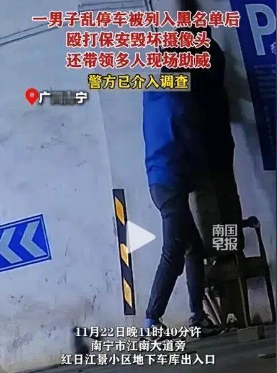 恶人自有天收!一个车位,让这个狂的没边的家伙动手砸监控,围殴保安!南宁这起深夜车库混战,我觉得可以为扫黑除恶添点新素材! 红日江景小区一业主,长期占别人车位不听劝,被物业拉黑后彻底翻脸。晚上假装提果篮道歉,转头就带人砸烂6个摄像头,12块显示器,还把保安打进医院。损失近万元,警方已锁定3人,这回怕是真要求锤得锤了。 有人说这是戾气社会的缩影,但我觉得,问题根源是没规矩惯了。明明有公共车位不停,偏要占私位。明明能协商,偏选暴力。法律面前,撒泼打滚不如老实守法,否则自由没争到,反把自己送进牢笼。 你的自由,不能踩过别人的底线!这起闹剧提醒我们。城市生活里,规矩不是束缚,而是保护每个人的安全带。