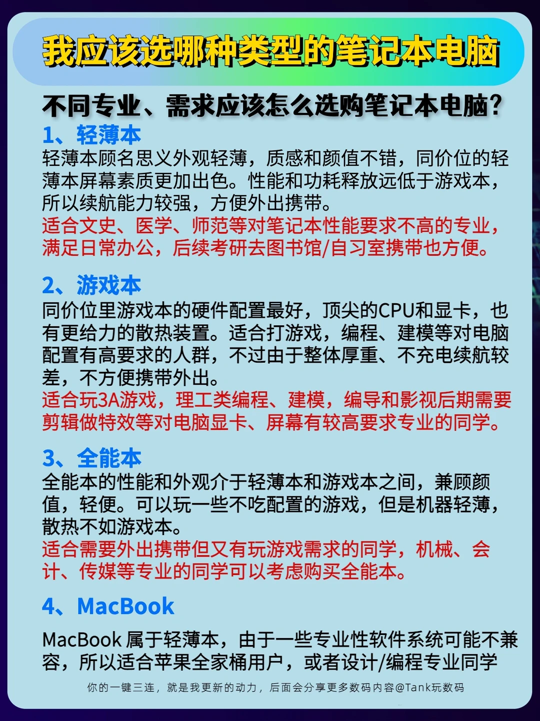 笔记本电脑价格昂贵,一般大学四年都不会换,所以一定要选择一台适合自己的!