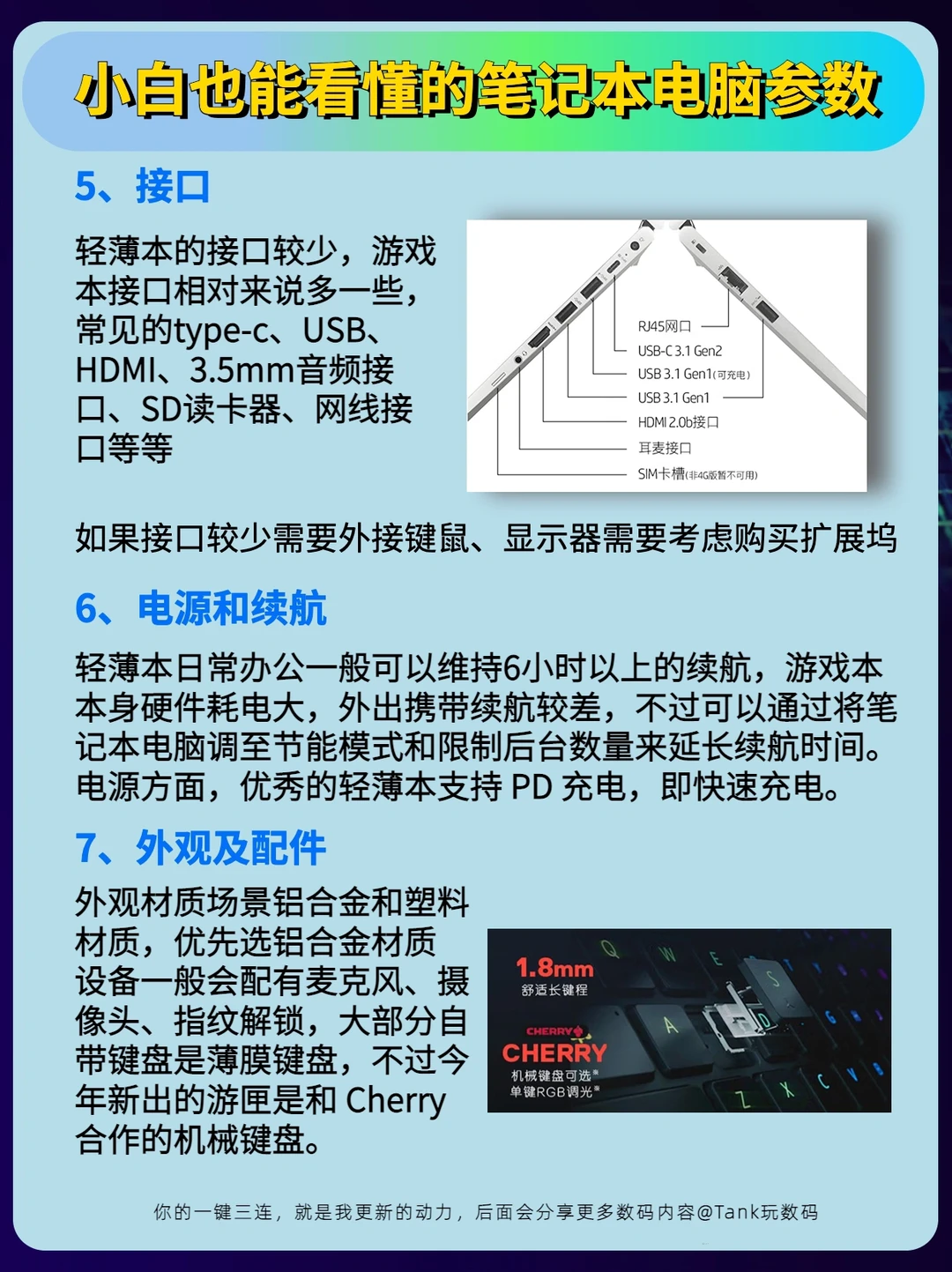 轻薄本的接口较少,游戏本接口相对来说多一些