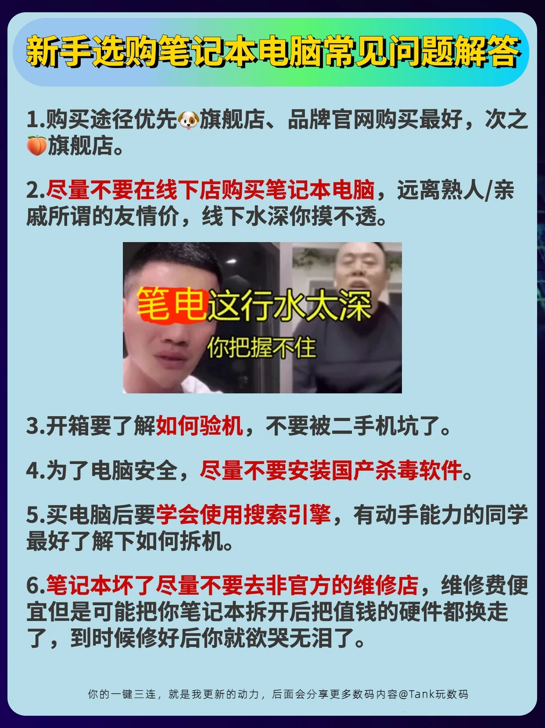 下面给大家整理的笔记本电脑选购攻略,大一新生可以参考我的内容进行选购,如果看完全文还不知道怎么选购,请以【专业+预算+需求】的方式提问。
