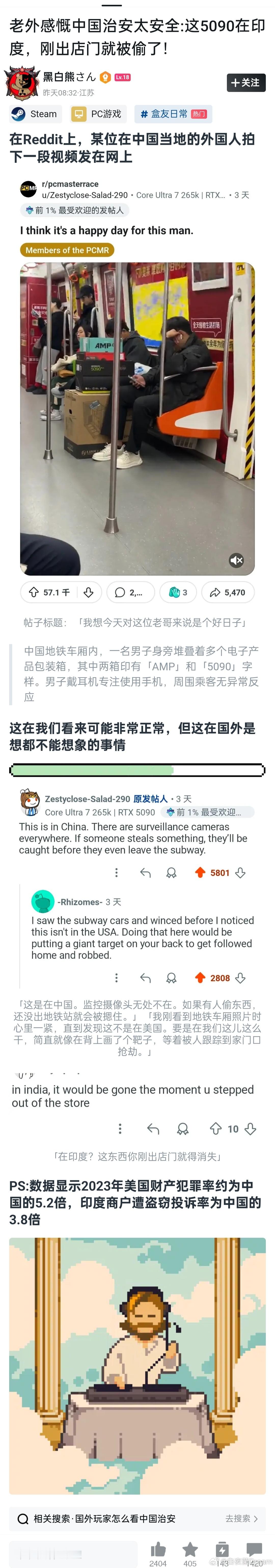 中国的治安太好了,外国人非常羡慕。