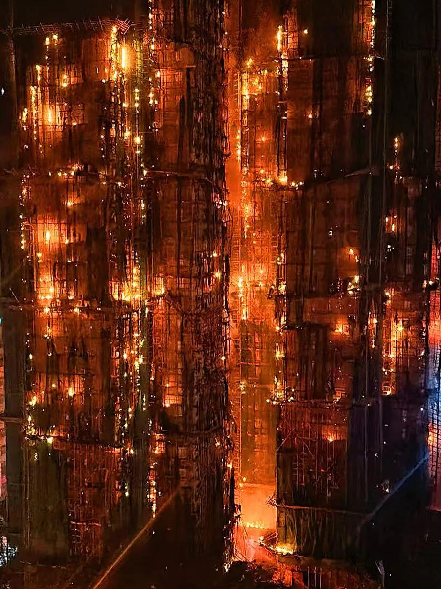 今天下午三点半在火车上看到这场火 当时在东铁线上经过大埔看到火灾,当时车厢很多人哇哇哇的表示震惊,后来六点多回到市区了新闻还在直播没有灭火,现在快十点了看到新闻伤亡人数十几个,很难过心里非常不舒服,愿一切安好失踪的人也平安找到。