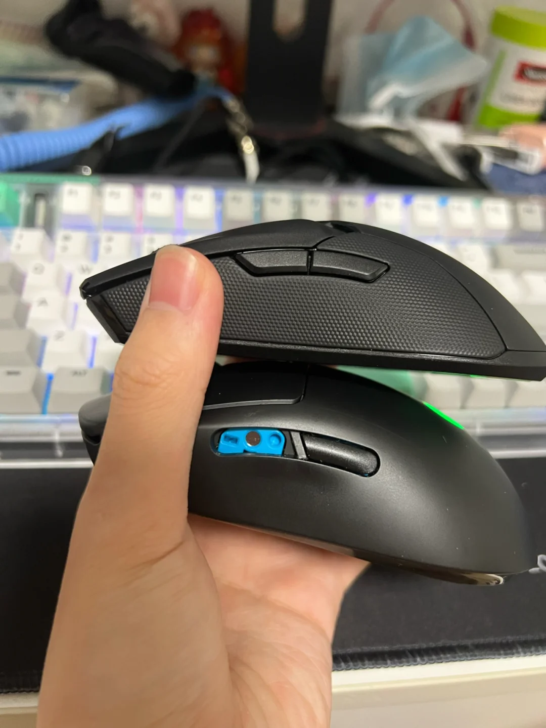 🌟触感方面,gpw 的涂层做了处理,刚开始摸上去手感很舒服,但是如果手容易出汗,用久了 gpw 会感觉黏黏的;雷蛇一开始上手给人一种塑料感,不过细致摸一下会发现表面是一层磨砂的防滑处理,相比较而言雷蛇毒蝰终极版用久了更舒服一些。