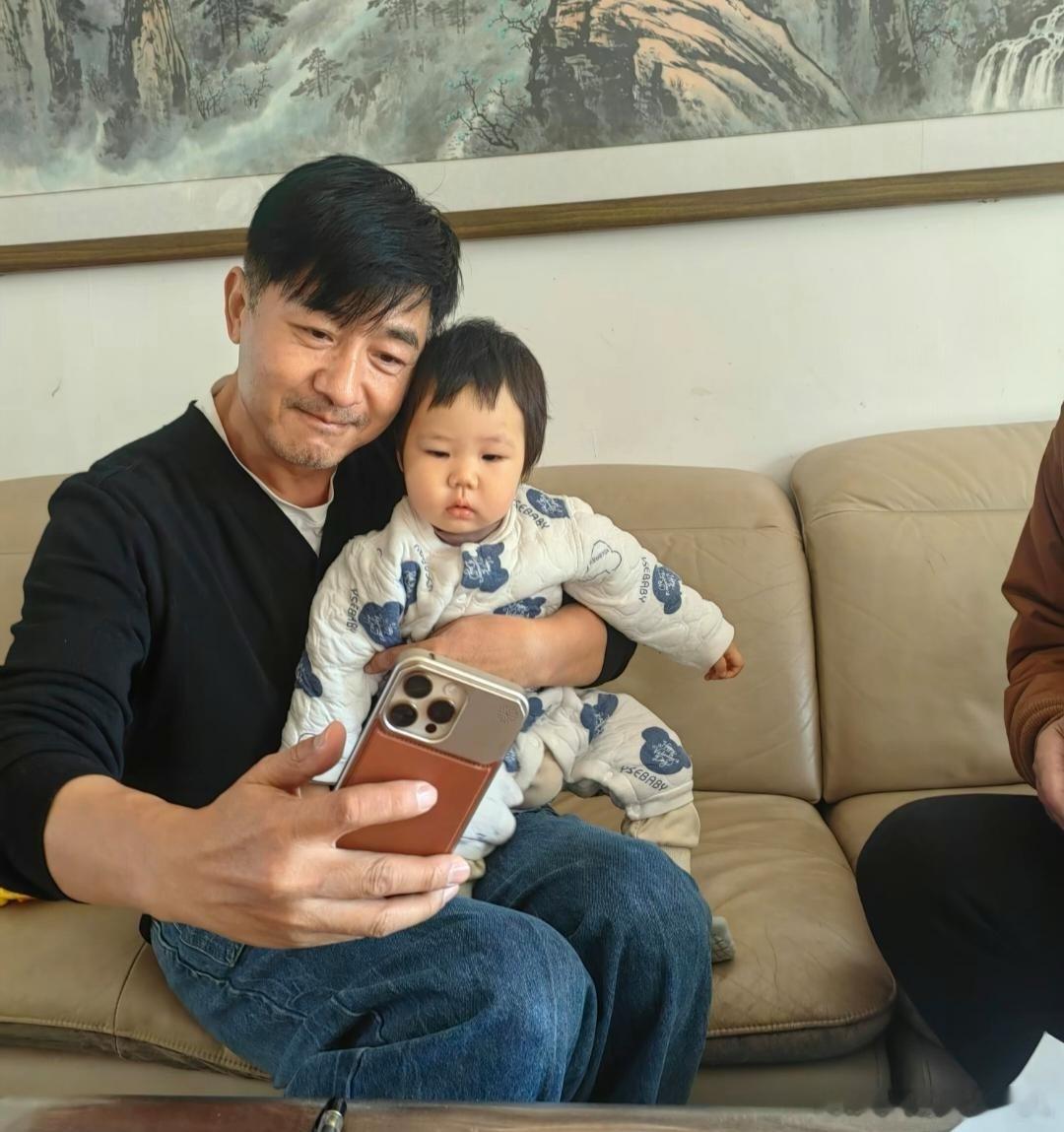 郭晓东回山东农村老家,到亲人家里做客,抱着年幼的外甥女自拍,看起来好亲切啊!