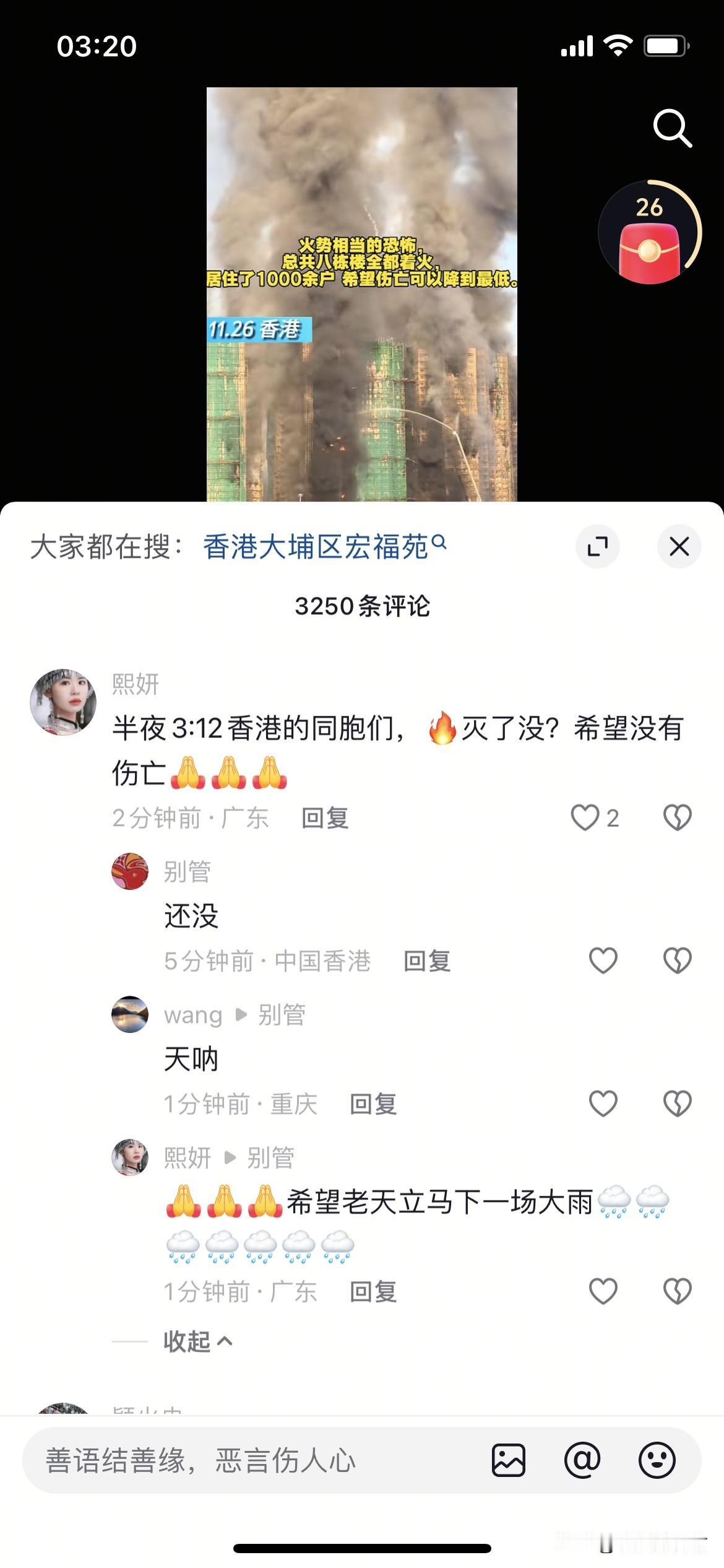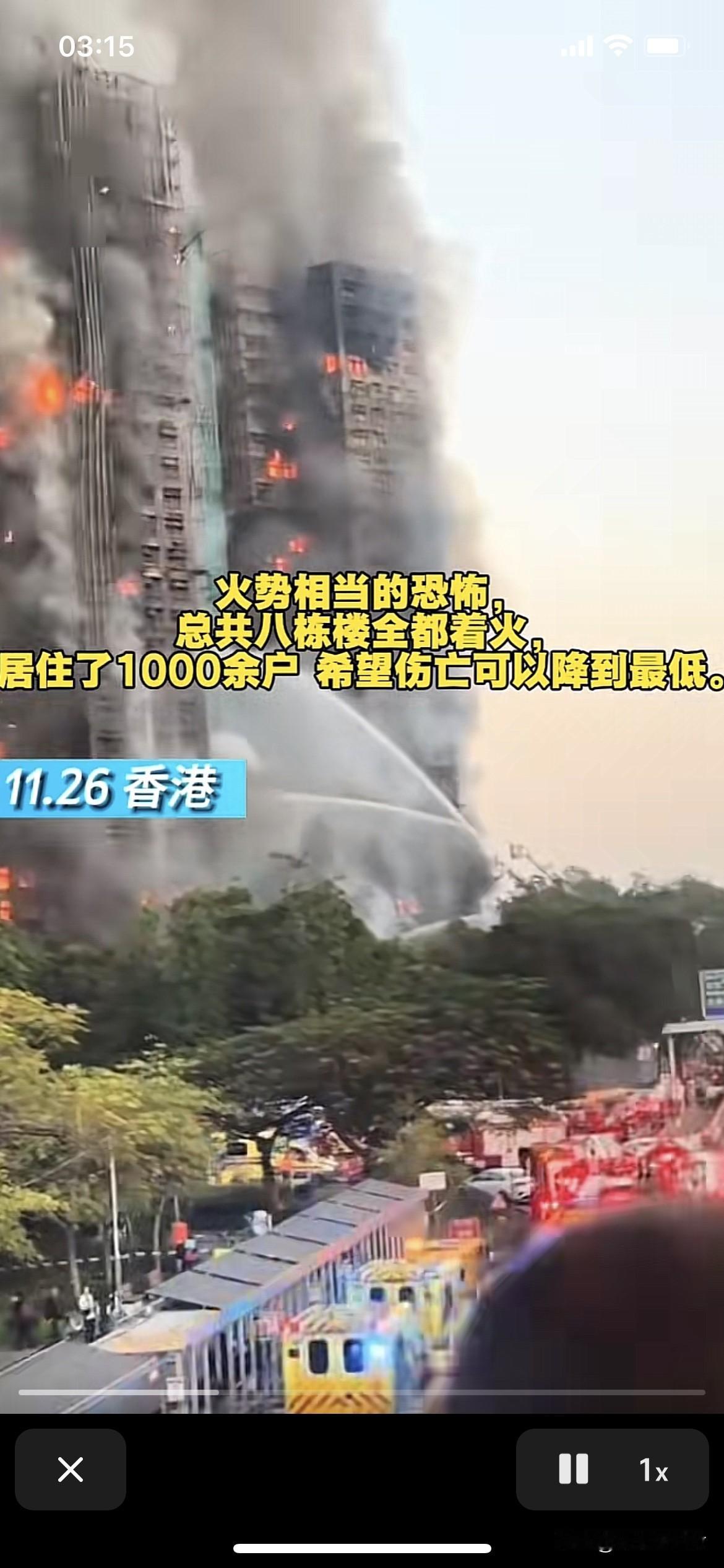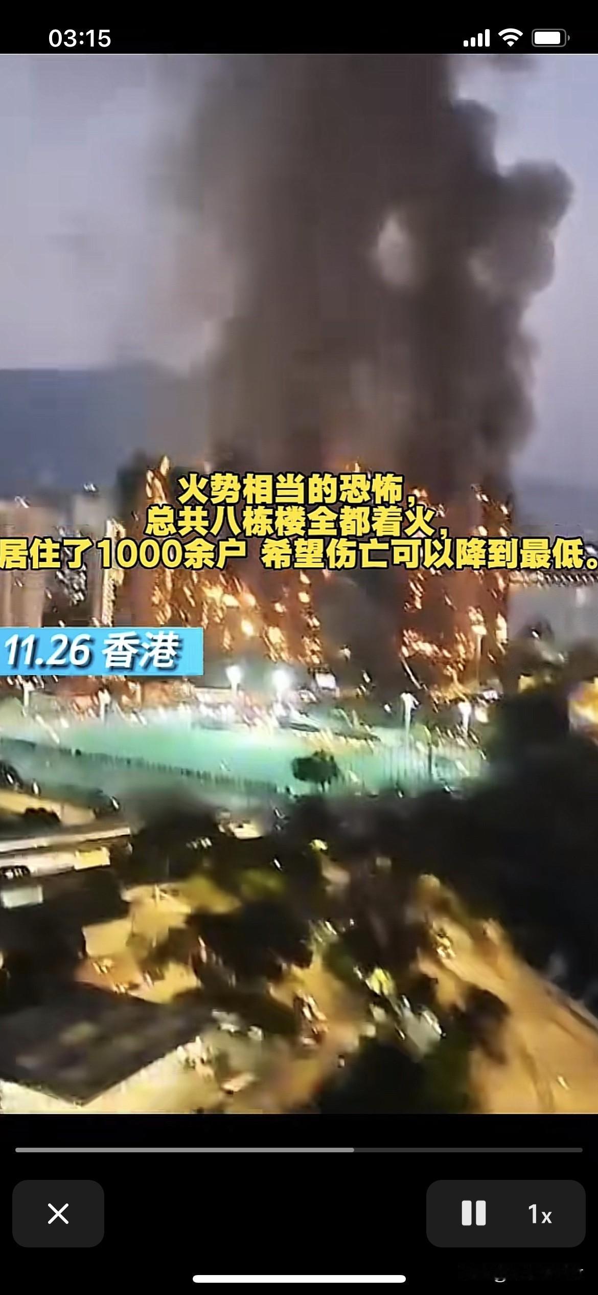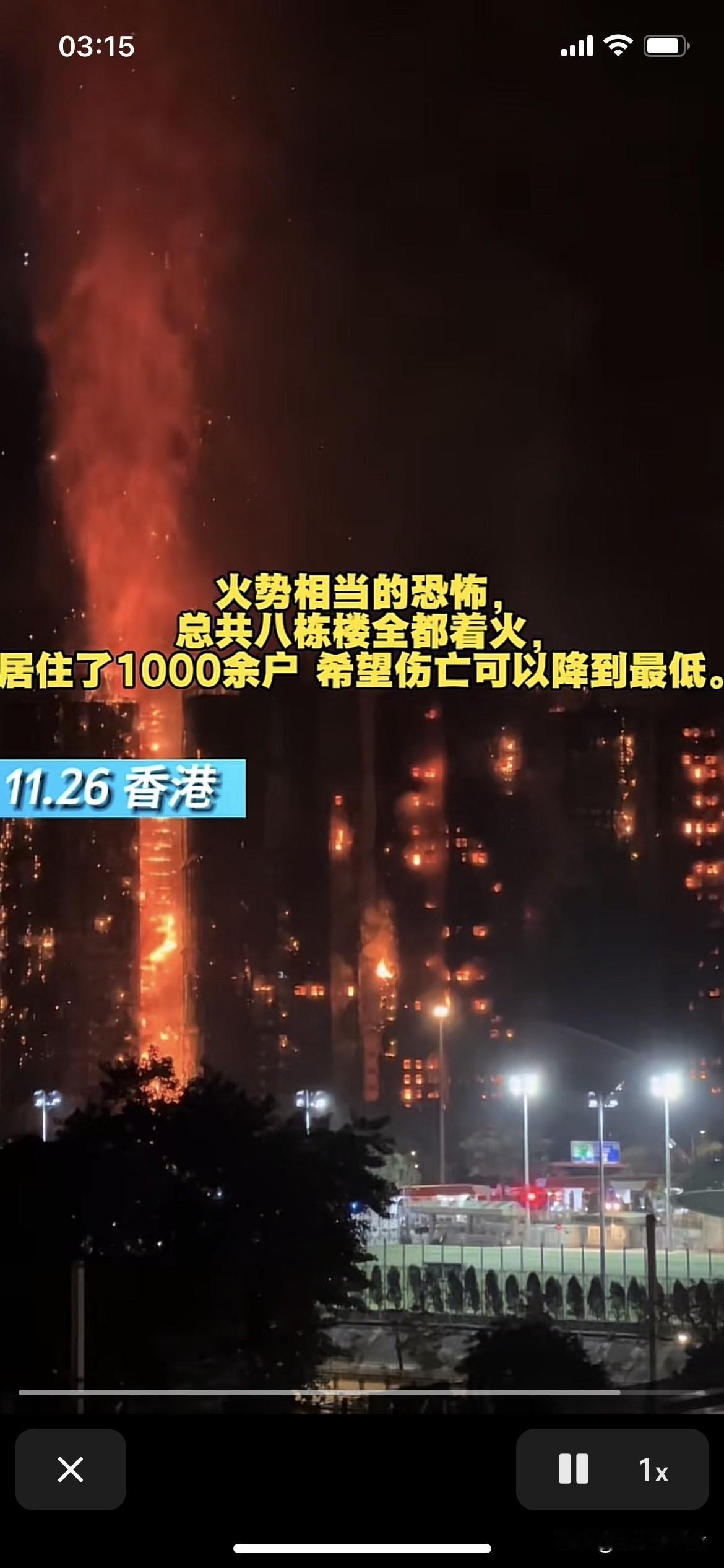 香港8栋楼发生火灾希望居民平安[祈祷] 凌晨3.10分看到这个视频,心里久久不能平静、天呐,8栋大楼、香港的同胞们,希望你们平平安安。 看视频应该是没有建完。有人说是翻修。总之有几栋楼没有住人。这样能降低损失。 为什么会8栋楼同时全部烧掉? 因为楼和楼离得特别近。 凌晨3时,香港同胞回复火还没有灭。 火势怎么这么大。看视频。天还没有黑就在灭火。到凌晨也没有灭。消防队是私人的吗?也有可能楼太高了。不好灭火。 网友说:42年老楼层,全住人,在维修外墙。楼房太老旧了。 [祈祷][祈祷][祈祷]希望尽量减少人员伤亡吧!