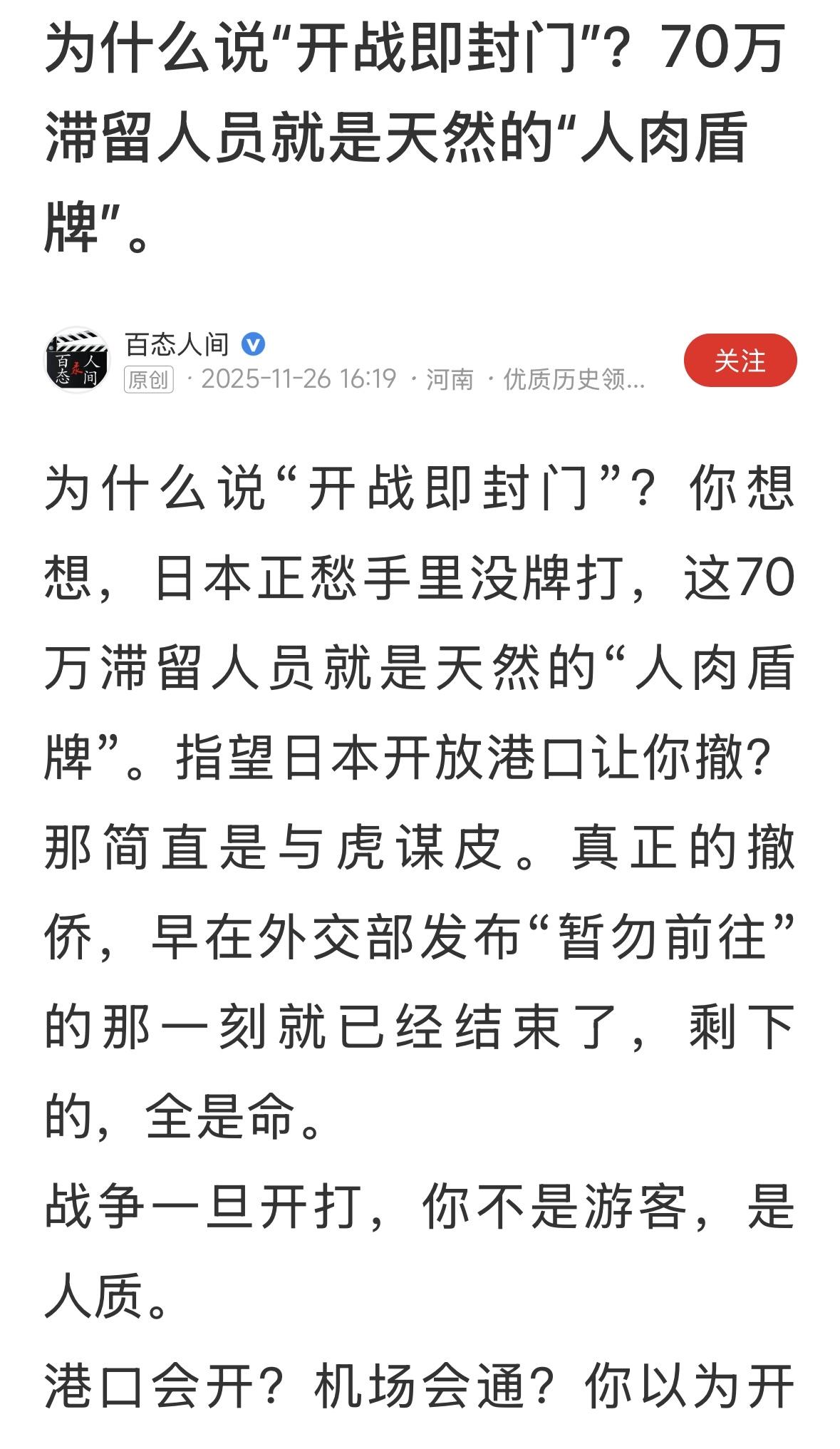 为什么说“开战即封门”?你想想,日本正愁手里没牌打,这70万滞留人员就是天然的“