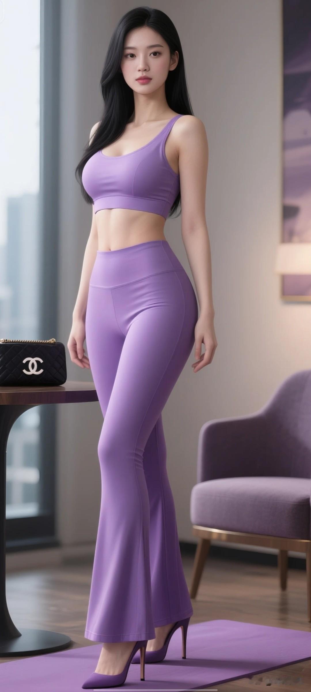 紫衣美人倚栏立,笑语盈盈映花枝。