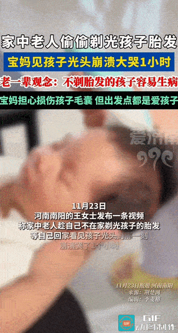 “防不胜防!”河南南阳,一宝妈因有事外出不到20分钟,回来发现家中奶奶趁着她不在家,偷偷将才几个月大的宝宝的胎发全部剃光了,宝妈回家看到孩子光头模样后,崩溃大哭近1小时!   11月23日,河南南阳的王女士在社交平台发布的这段视频,让无数网友感同身受。   这位全职妈妈怎么也没想到,自己出门取快递短短20分钟,女儿就被奶奶偷偷带去剃了胎发,情绪失控的她躲在房间里哭了近一个小时。   王女士的崩溃并非小题大做。她给记者看了宝宝剃发前的照片,镜头里50多天的女婴睫毛纤长,胎发柔软地覆在头顶,透着初生的娇嫩。   王女士说自己从怀孕时就开始查育儿资料,知道新生儿头皮才1毫米厚,比一张薄纸还脆弱,毛囊根本没发育好。   为了防止长辈动孩子头发,她不仅反复跟奶奶强调风险,还特意把家里的剃刀藏进了衣柜深处,可终究没防住老人“另寻工具”带孩子外出剃发。   在奶奶看来,自己的举动全是出于疼爱,老家都这么说,胎发不剃孩子容易生病,我孙子当年就是这么过来的,现在头发又黑又密。   这种扎根在老人记忆里的经验,成了她坚持己见的理由。   可北京儿童医院皮肤科专家早就明确表示,胎发的疏密粗细由遗传和孕期营养决定,和剃不剃毫无关系,反而会自然脱落更换,剃光后失去了天然屏障,更容易受凉或感染。   这场看似偶然的家庭风波,其实是全国无数家庭的缩影,2024年的最新调研数据显示,全国“隔代育儿”家庭中,因“育儿方式否定”引发的矛盾占比高达29%。   老一辈依赖口口相传的经验,年轻父母信奉科学依据,双方都抱着“为孩子好”的初衷,却常常闹得不愉快。   更值得警惕的是,华盛顿大学的研究指出,3-6岁儿童长期面对家庭争执,焦虑概率会提高37%,而他们对冲突的敏感度更是成人的2到3倍。   万幸的是,这场风波没有演变成亲情裂痕,王女士哭够了走出房间,看到奶奶正抱着宝宝小声哄着,眼里满是愧疚,瞬间就软了心。   老人不是敌人,只是用自己熟悉的方式爱孩子,王女士的丈夫这时站了出来,他没指责母亲,而是翻出权威医院的科普文章,配上宝宝头皮护理的图片,一点点跟老人解释。   当看到“不当剃发可能导致毛囊炎”的案例时,奶奶沉默了,最终承诺以后一定先跟儿子儿媳商量,不再擅自做主。   隔代育儿矛盾的解药从不是妥协,而是带着尊重的沟通,如今再看王女士发布的后续视频,画面里奶奶正学着用婴儿梳给宝宝按摩头皮,王女士在一旁轻声指导。   宝宝的胎发已经慢慢冒出新茬,虽然还是短短的,但在阳光下透着健康的光泽,网友的评论里,一句“剃掉的是胎发,长出来的是理解”获得了最高点赞。   其实每个家庭的育儿路上,都难免有观念的碰撞,老一辈的经验里藏着岁月沉淀的疼爱,年轻父母的科学认知中满是细致的珍视。   真正的家庭和睦,从不是谁说服谁的胜负,而是像王女士一家这样,让经验学会尊重边界,让科学带着温度包容。   当爱跨越了代际的差异,每个孩子都能在和睦的家庭里,长出最坚实的成长力量。