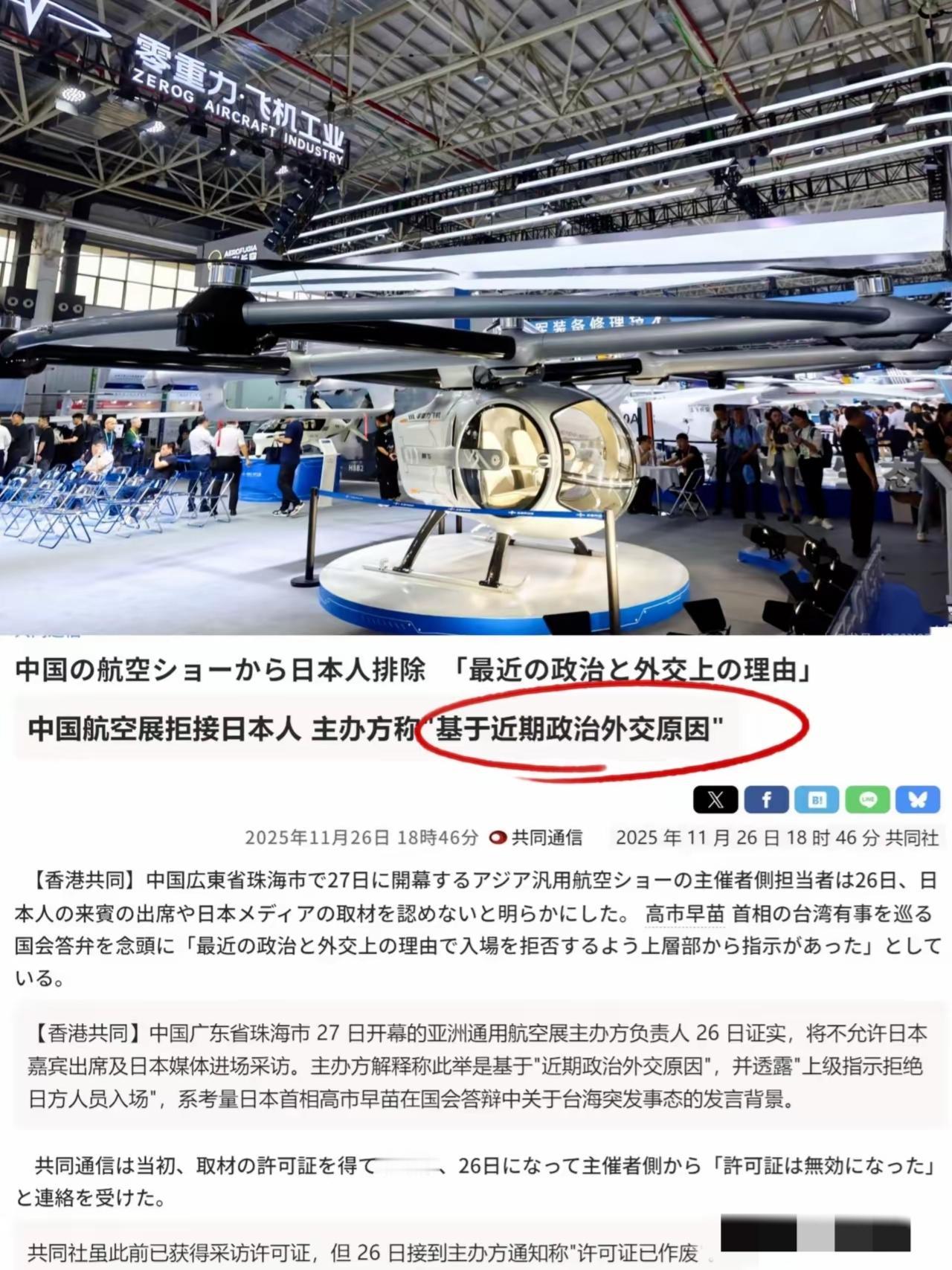 珠海航展明确拒绝接待日本人,简直就是大快人心、大快人心啊! 据了解日本共同社报道,中国广东珠海航展27日开幕的亚洲通用航空展主办方负责人26日证实,不允许日本嘉宾出席,同时也将拒绝日本媒体进行采访!这时日本共同社还戏精上身的喊冤许可证作废,简直就是跳梁小丑,如果真不知道原因就应该回日本问问你家日本首相高市早苗说了什么不该说更不能说的话,让日本企业和日本媒体如此蒙羞,而不是在这里作秀污蔑我们中国人针对你们日本,先把事实搞清楚再说其它的问题! 当年日本岩国航展正大光明的不让中国人进,怎么不说不公平?现在高市早苗上台,又是鼓吹“台湾有事,就是日本有事”,又是要松绑武器出口、琢磨放弃“无核三原则”,处处挑衅中国核心利益,真当我们没脾气吗?尊重从来都是双向奔赴的,既然日本不尊重我们中国,我们中国当然也不会惯着你们日本,这都是你们日本人自己作的,怪不得别人! 最后我想说的是,主办方的做法没毛病,这不是针对普通日本人,而是对日本右翼挑衅的正当回应!想享受平等对待,先学会尊重别人的核心利益!你觉得面对这种挑衅,我们该这样硬核回应吗?来评论区聊聊!