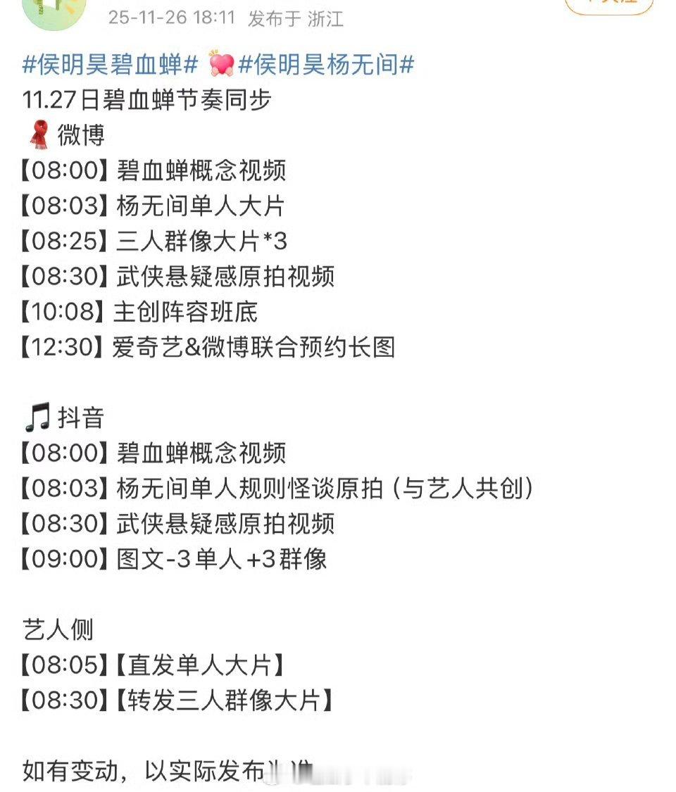 侯明昊《碧血蝉》杨无间明天官宣节奏,提前祝开机大吉!