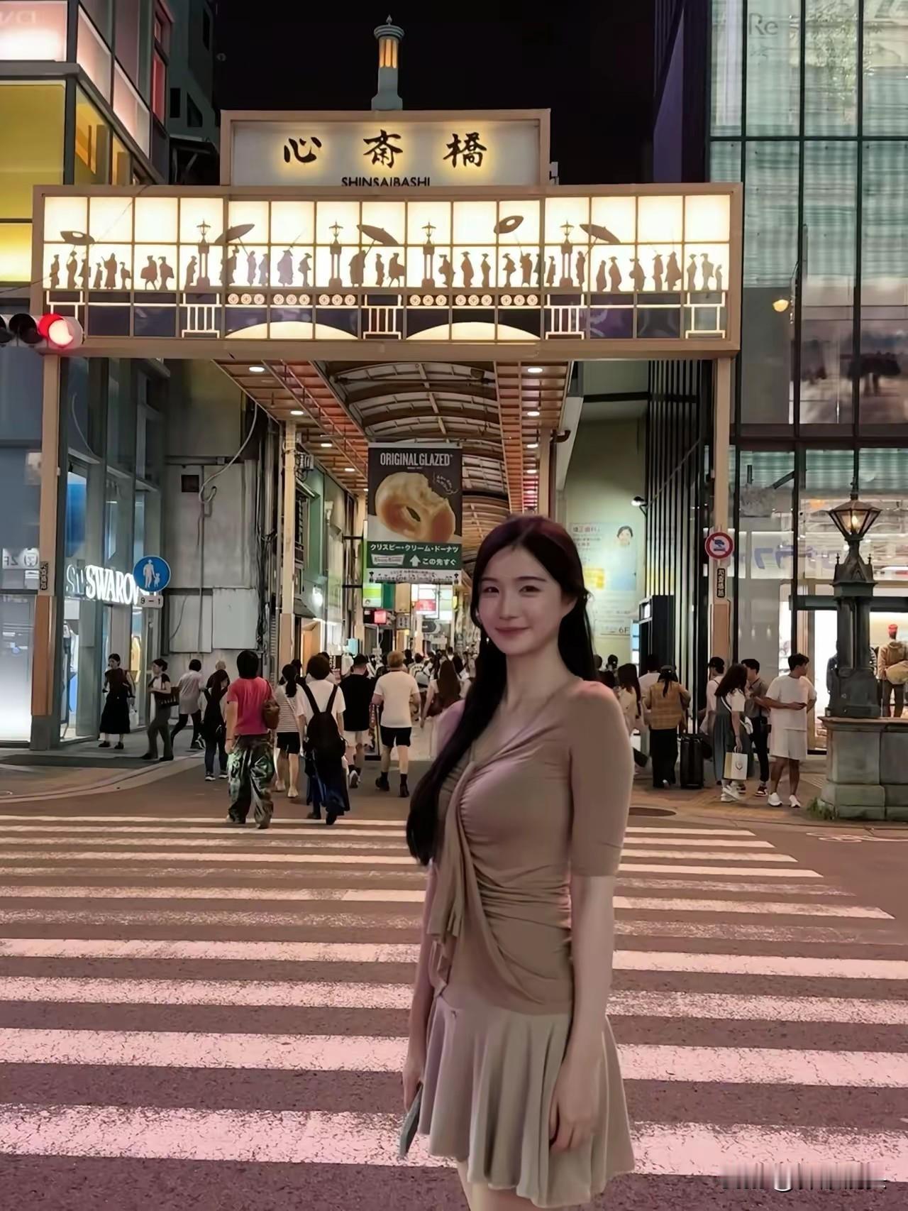 夜晚的心斋桥,繁华街头,灯火阑珊,人潮涌动。