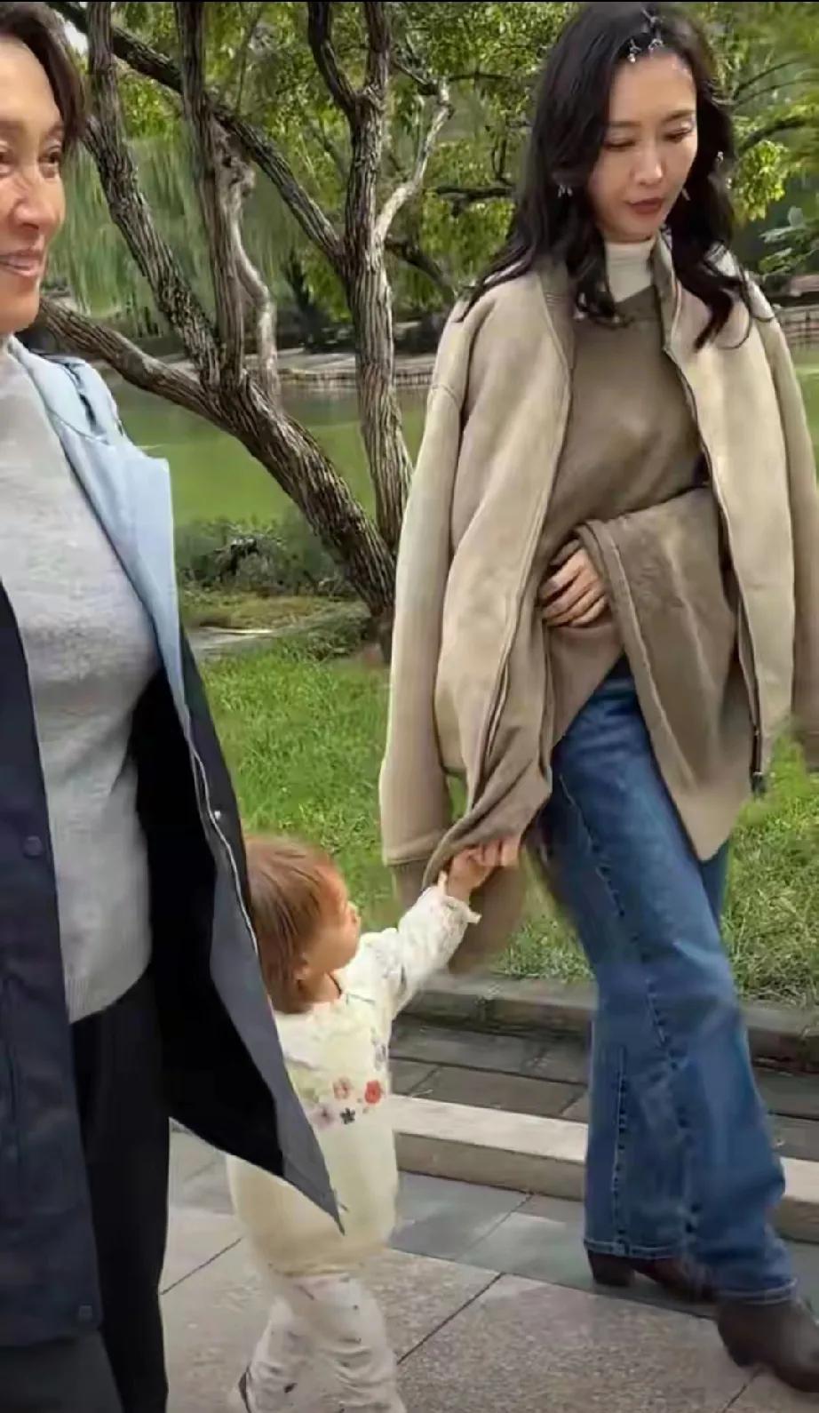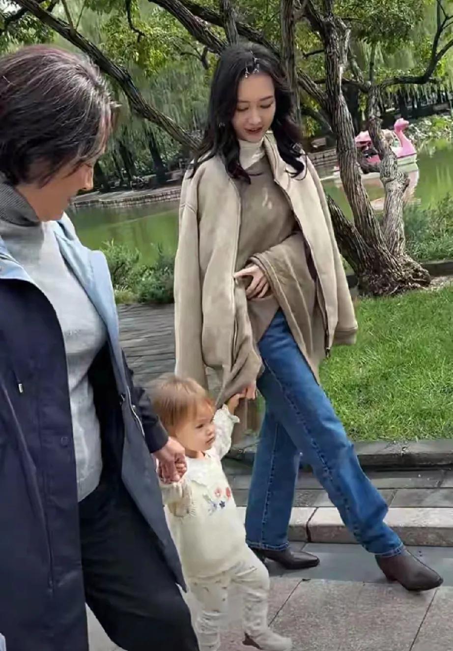 43岁王鸥北京朝阳公园被拍!她身着浅棕色外套配牛仔裤,素颜却状态绝佳,手牵混血萌