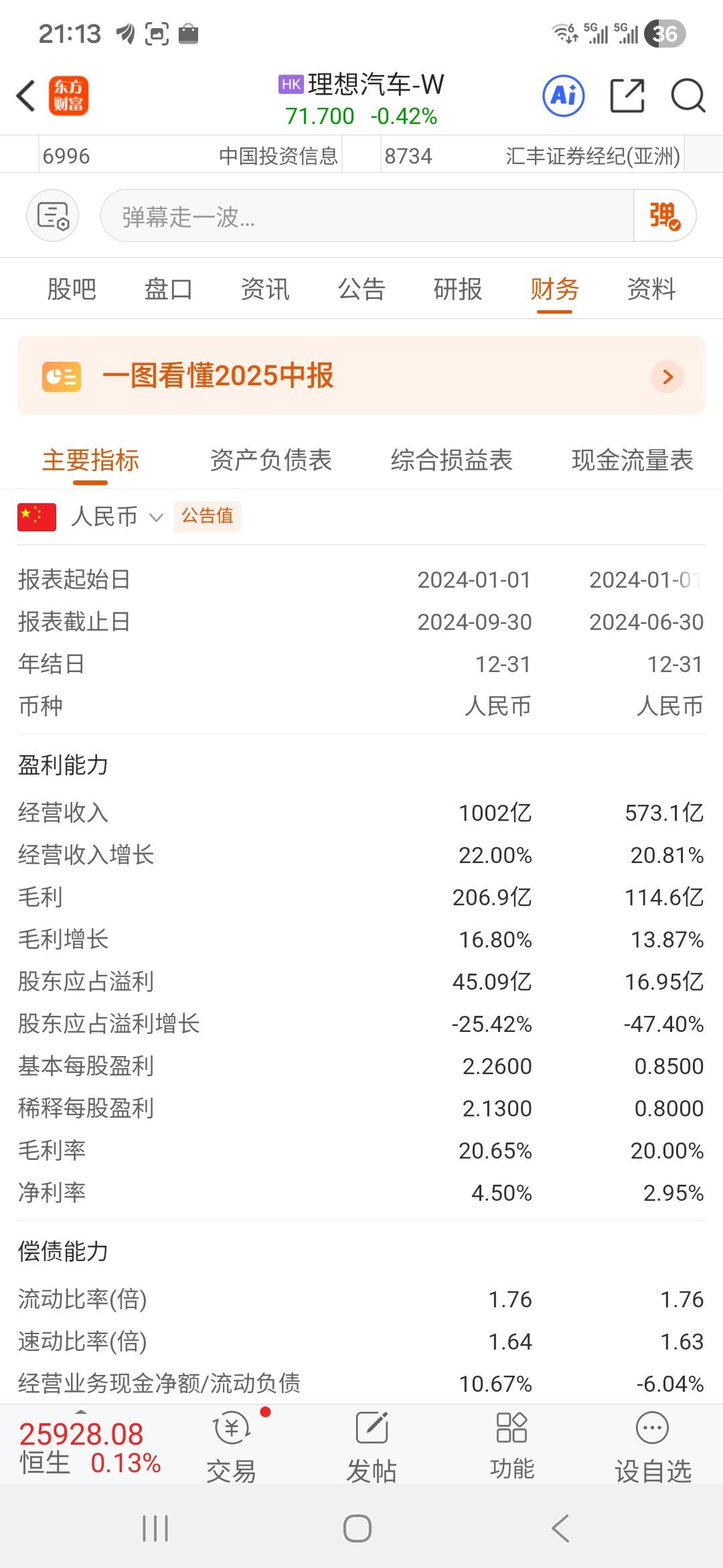 理想汽车今年第三季单季营收273.7亿,去年同期428.9亿,同比待增长36.2%。单季利润-6.25亿,去年同期28.14亿,同比待增长122.2%。这是在新增2款全新车型,且L系列车型中期改款的前提下达成的业绩。