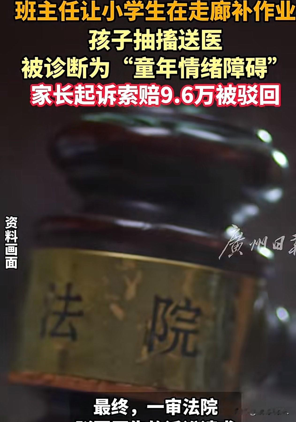 山东枣庄,小学6年级老师,发现班里一学生没完成作业,就让他走廊去补作业,期间,没有打骂等行为。岂料,30多分钟后,该学生回到班级,老师敏锐的察觉到学生状态不对劲,就赶紧通知其家长。孩子母亲没当回事,就说自己很忙去不了。老师很负责任,派两个学生护送其回去。万万没想到,事后,该学生被查出患上“童年情绪障碍”,家长炸了,把责任全推给老师,认为是老师体罚了自家孩子,给孩子造成心理伤害。狮子大张口,向学校索赔9.6万余元。老师很委屈:难道让学生补作业也不对吗?家长索赔不成将老师和学校一并告上法庭,法院的判决亮了。 2024年11月的一天,某小学六年级的小张同学,和班里其他六七名同学一起,因为没写完作业,被班主任叫到了教室外面的走廊上补写。 班主任当时确实有点生气,毕竟六年级正是学习关键期,孩子们对作业不上心、学习态度不端正,作为老师肯定着急。 不过从头到尾,老师既没打也没骂,没说过一句过激的话,更没有任何体罚行为,就是让孩子们在走廊安安静静补作业,自己则留在教室里处理日常教学事务。 大概过了半小时,补完作业的孩子们陆续回到了教室,小张也跟着进去了。 本以为这事儿就这么过去了,可没过多久,班主任就发现小张的状态有点不对劲。 平时挺活泼的孩子,那天却蔫头耷脑的,坐在座位上一动不动,身体还在微微发抖。 经验丰富的班主任立马察觉到,孩子这不是闹脾气,大概率是生病了,赶紧掏出手机给小张妈妈打电话,让她赶紧来学校接孩子去医院看看。 可小张妈妈当时说自己手头事情太多,抽不开身,让孩子自己先回家。 班主任一听就放心不下了,六年级的孩子虽然不算小,但身体不舒服的时候一个人回家,万一出点意外可怎么办? 于是老师特意安排了两名同学,一路陪着小张回家,反复叮嘱他们一定要把小张安全送到家门口,这才稍微放下心来。 谁也没想到,就是这么一件看似平常的小事,之后竟然引发了一连串的问题。 从去年12月开始,小张的身体状况越来越不对劲,不仅精神状态差,还出现了各种异常反应。 家长赶紧带着孩子去看病,先后跑了枣庄市精神卫生中心、山东省立医院等多家大医院,做了一系列检查,最后被确诊为“童年情绪障碍”。 好好的孩子突然得了这种心理疾病,小张的家长根本接受不了。 他们思来想去,觉得问题肯定出在去年11月那次走廊补作业上。 在家长看来,老师让孩子在走廊补作业,这本身就是一种体罚行为,孩子年纪小,心理承受能力弱,肯定是当时受了委屈、心里留下了阴影,才会患上这种病。 一想到孩子需要长期治疗,后续还要花不少钱,家长就越想越生气,于是一纸诉状把学校告上了法庭,要求学校当面给孩子赔礼道歉,还得赔偿所有的医疗费、护理费等各项损失,总共算下来有9.6万余元。 可学校这边觉得特别冤枉。 校方表示,整个过程老师没有任何打骂行为,让学生补作业是很正常的教学管理行为,根本算不上体罚。 孩子自己患上心理疾病,和学校的教学行为没有任何关系,怎么能让学校来承担这笔费用呢?双方就这么各执一词,多次协商都没能谈拢,最后只能靠法院来判决。 小张妈妈在法庭上情绪很激动,她坚持认为孩子就是因为被老师体罚才患上心理疾病的,现在孩子每天都要吃药治疗,学习和生活都受到了很大影响,学校必须承担相应的责任。 《民法典》第1183条,该条款规定侵害自然人人身权益造成严重精神损害的,被侵权人有权请求赔偿。‌ 为了查清事实真相,法官首先调取了当天学校的监控录像。 从监控画面来看,老师确实没有对小张有任何打骂或者过激行为,让孩子们在走廊补作业的过程也很平静。 而且老师发现小张状态异常后,不到10分钟就联系了家长,在家长无法到场的情况下,还特意安排同学护送回家,处置措施可以说是及时又妥当,并没有因为处理不及时导致孩子的情况加重。 更关键的一点是,小张家长为了证明孩子的病和走廊补作业之间有因果关系,曾经申请做司法鉴定。 可他们前后找了6家鉴定机构,每家机构都表示这个鉴定超出了他们的能力范围,没办法出具相关结论。 这就意味着,没有任何专业证据能证明,小张患上童年情绪障碍是因为那次走廊补作业。 《民事诉讼法》第67条规定:当事人及其诉讼代理人因客观原因不能自行收集的证据,或者人民法院认为审理案件需要的证据,‌人民法院应当调查收集‌。 另外,老师因为小张没完成作业让他在走廊补写,监控已经证实没有打骂等体罚行为,这种行为属于合理的教育管理范畴,并没有违反教育职责的要求。 而且老师发现小张异常后,及时联系家长、安排同学护送,已经尽到了应急救助职责,没有因为处置不当让损害后果加重。 所以从这一点来看,学校已经尽到了自己的责任。 最后,法院驳回小张家长的诉讼请求。
