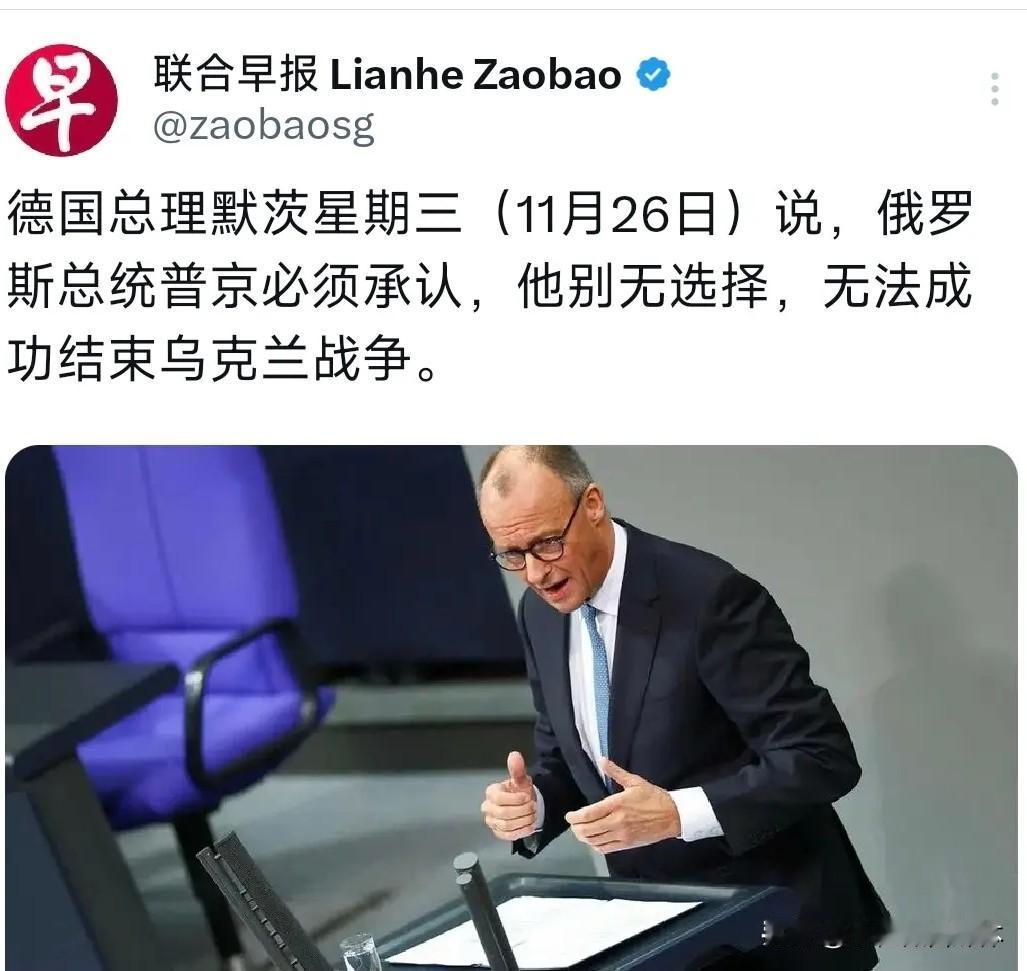 普京必须承认,他无法成功结束战争! 11月26日,联合早报报道:德国总理默茨表