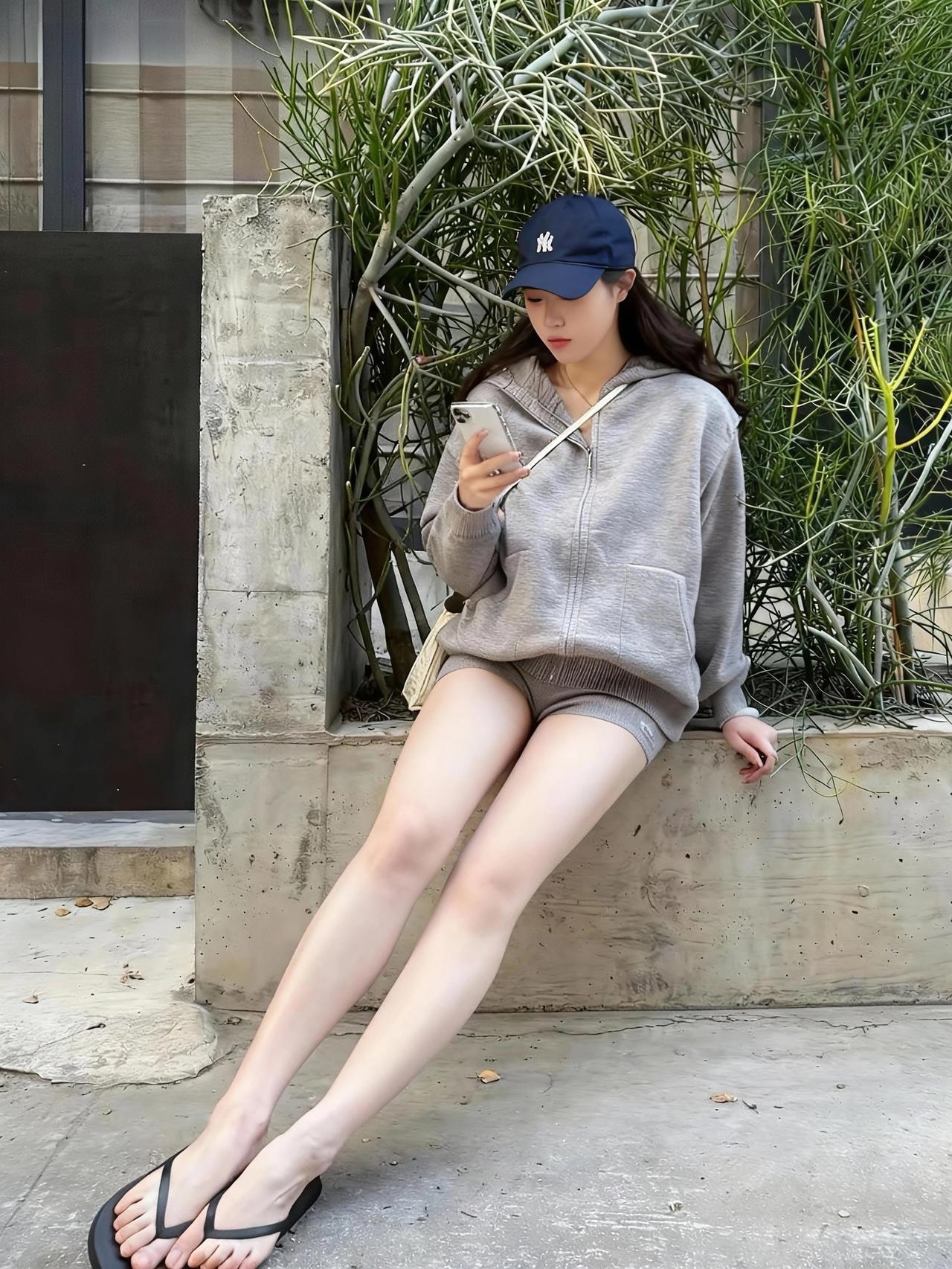 灰衣少女倚栏立,轻抚帽檐思悠哉。美腿惹人爱。美人照怎么拍才好看 人美衣美笑容美,